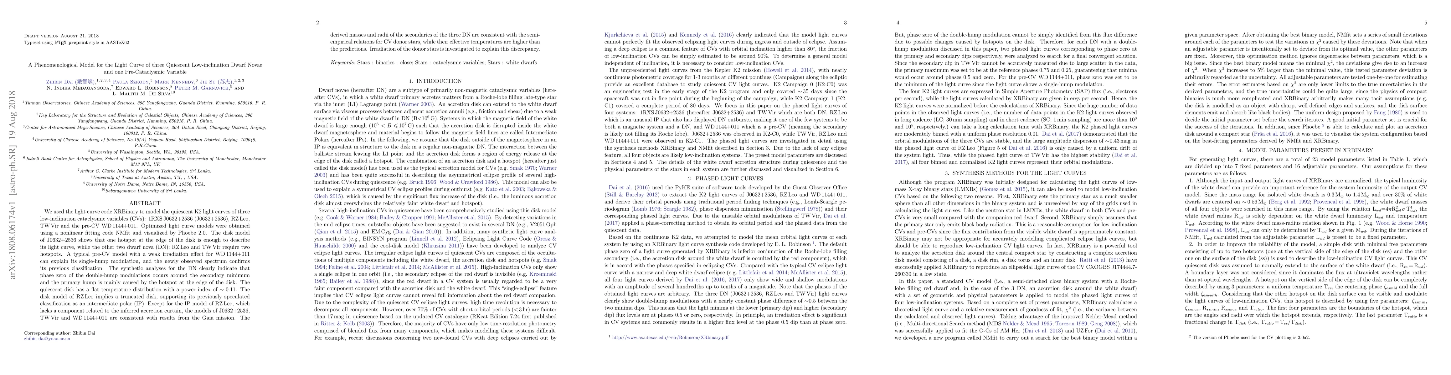 We used the light curve code XRBinary to model the quiescent K2 light curves of three low-inclination cataclysmic variables (CVs): 1RXS\,J0632+2536 (J0632+2536), RZ\,Leo, TW\,Vir and the pre-CV WD\,1144+011. Optimized light curve models were obtained using a nonlinear fitting code NMfit and visualized by Phoebe 2.0. The disk model of J0632+2536 shows that one hotspot at the edge of the disk is enough to describe its light curve, while the other two dwarf nova (DN): RZ\,Leo and TW\,Vir require two hotspots. A typical pre-CV model with a weak irradiation effect for WD\,1144+011 can explain its single-hump modulation, and the newly observed spectrum confirms its previous classification. The synthetic analyses for the DN clearly indicate that phase zero of the double-hump modulations occurs around the secondary minimum and the primary hump is mainly caused by the hotspot at the edge of the disk. The quiescent disk has a flat temperature distribution with a power index of $\sim0.11$. The disk model of RZ\,Leo implies a truncated disk, supporting its previously speculated classification as an intermediate polar (IP). Except for the IP model of RZ\,Leo, which lacks a component related to the inferred accretion curtain, the models of J0632+2536, TW\,Vir and WD\,1144+011 are consistent with results from the Gaia mission. The derived masses and radii of the secondaries of the three DN are consistent with the semi-empirical relations for CV donor stars, while their effective temperatures are higher than the predictions. Irradiation of the donor stars is investigated to explain this discrepancy.