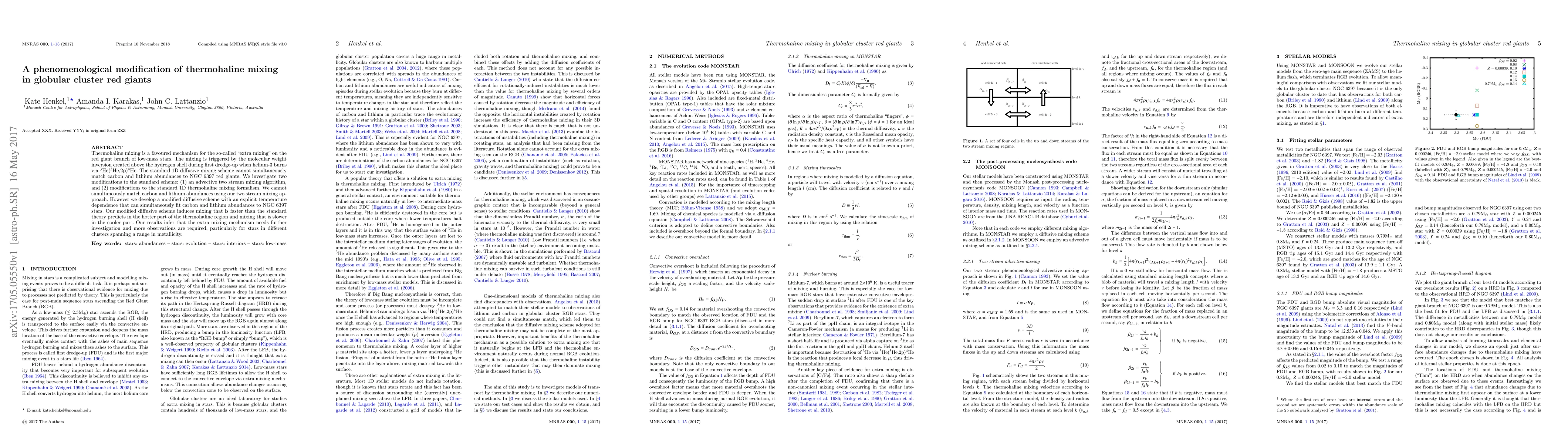 This paper investigates modifications to the thermohaline mixing model to better match carbon and lithium abundances in NGC 6397 red giants. A modified diffusive scheme with temperature dependence successfully fits the observed abundances, suggesting the need for further investigation into the extra mixing mechanism.