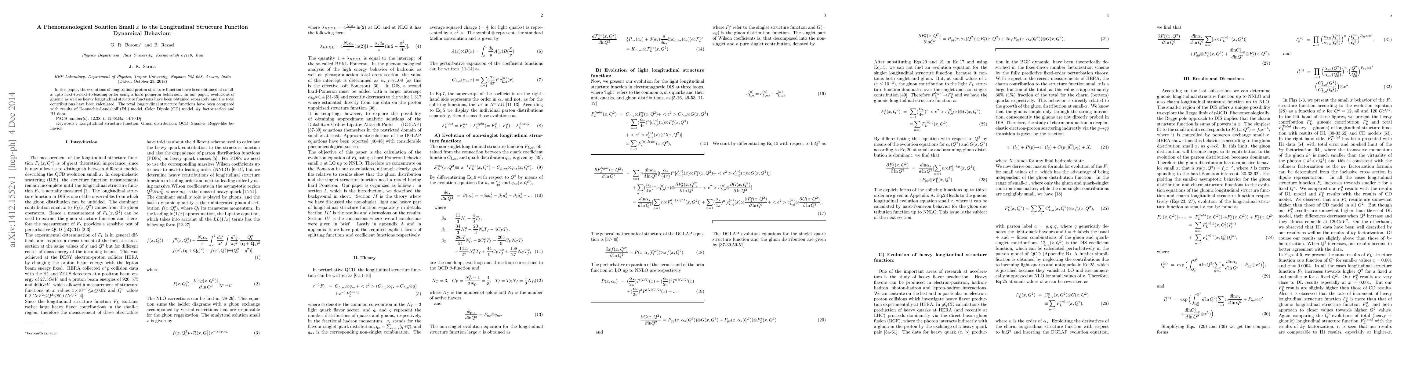 This paper investigates the evolution of longitudinal proton structure functions at small-$x$ up to next-to-next-to-leading order using a hard Pomeron approach, comparing results with the Donnachie-Landshoff, Color Dipole models, $k_{T}$ factorization, and H1 data. Separate evolutions for gluonic and heavy longitudinal structure functions are calculated and analyzed.