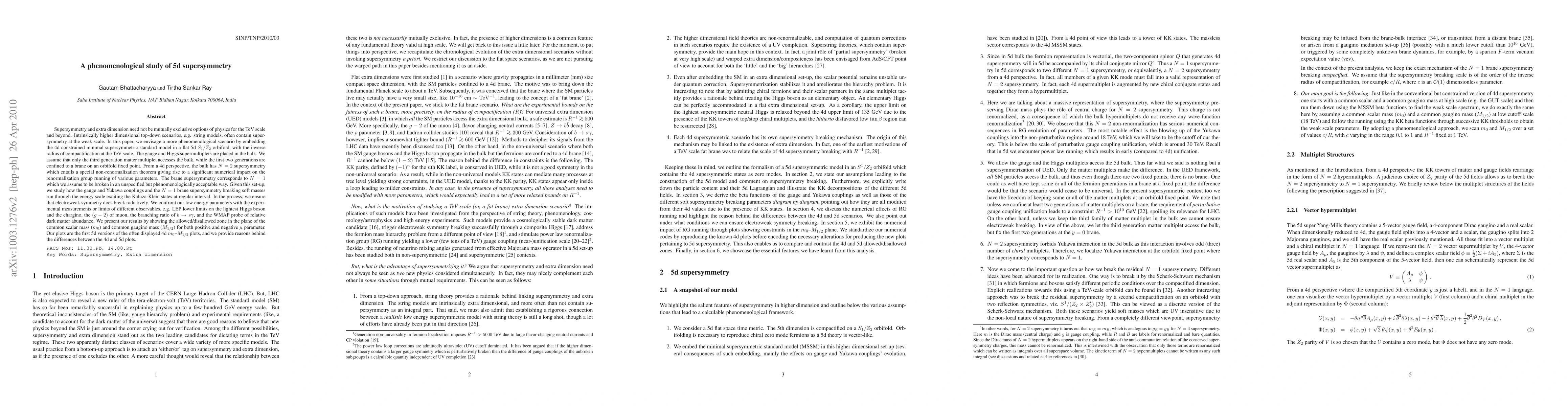This paper explores a phenomenological model of 5d supersymmetry by embedding the 4d MSSM in a 5d $S_1 /Z_2$ orbifold with TeV scale compactification. It examines the impact of N=2 bulk supersymmetry on the renormalization group running of parameters and presents 5d versions of $m_0$--$M_{1/2}$ plots, highlighting differences from their 4d counterparts.