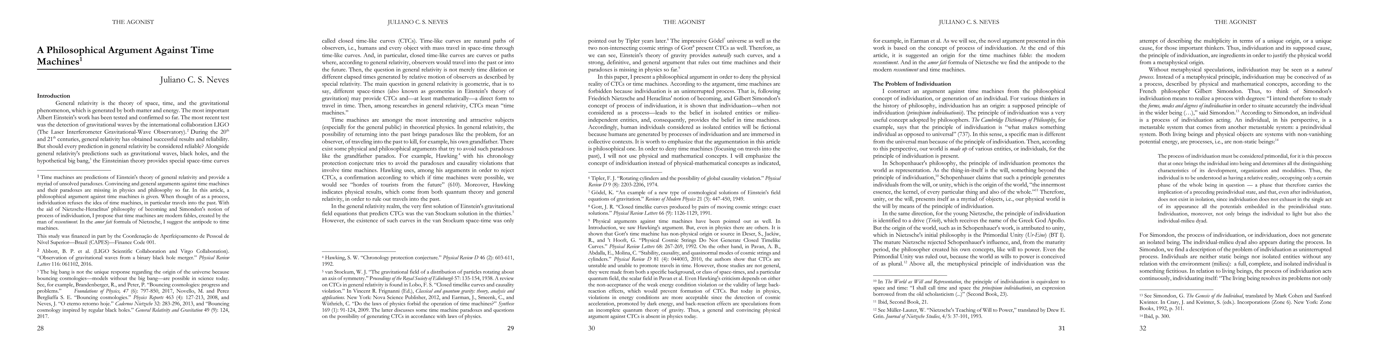 This paper argues against the possibility of time machines by asserting that the process of individuation, informed by Nietzsche-Heraclitus' philosophy of becoming and Simondon's notion of individuation, inherently rejects the concept of time travel, especially into the past. It proposes that time machines are modern myths born from $\textit{ressentiment}$ and suggests $\textit{amor fati}$ as a philosophical counter to their existence.