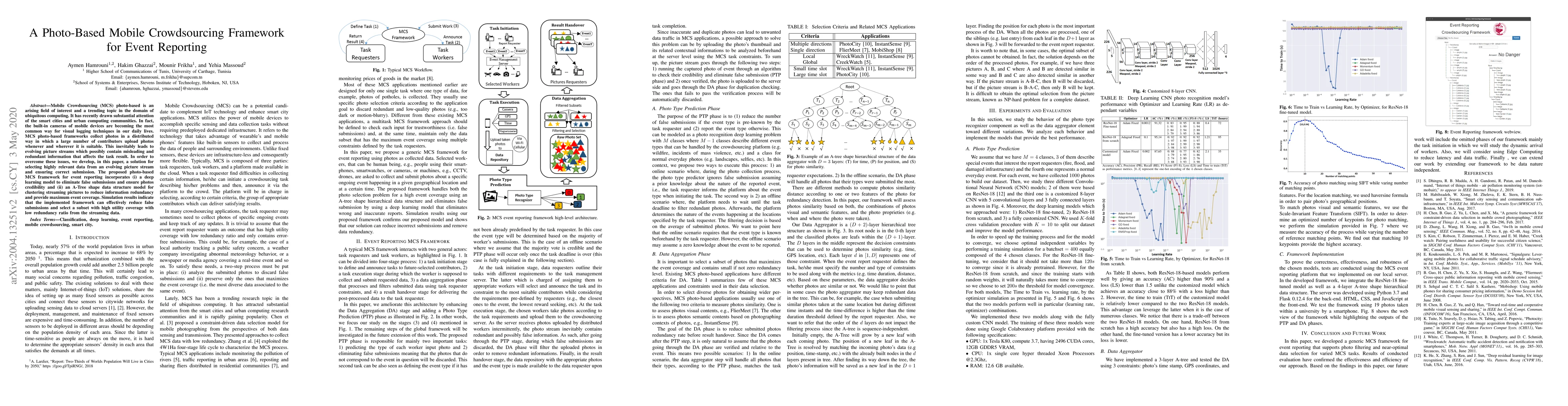 A new mobile crowdsourcing framework uses deep learning to filter out false photos and an A-Tree data structure to reduce redundancy, improving event reporting accuracy.