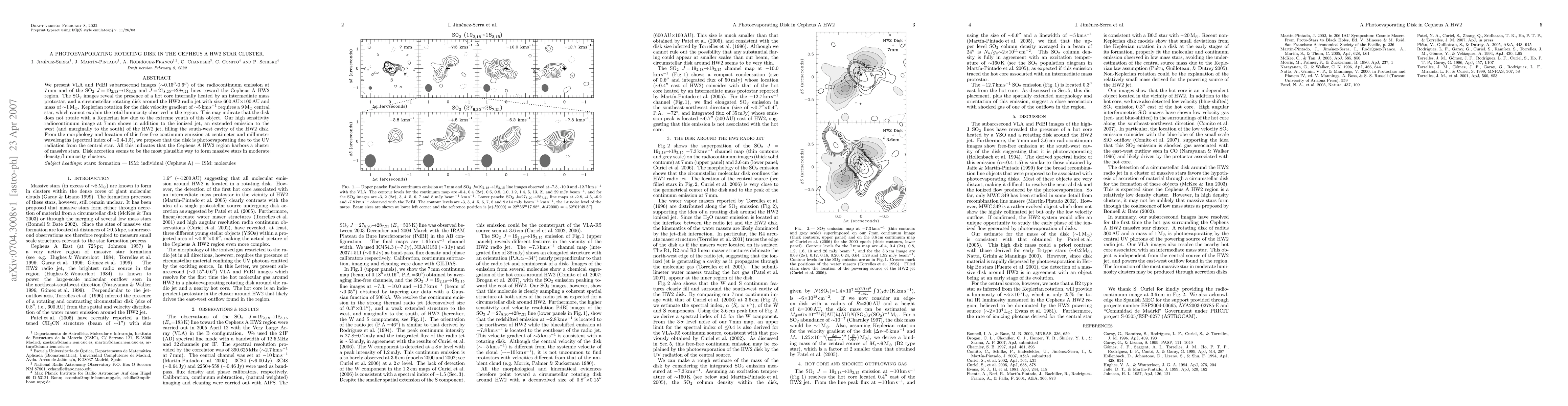 This study reveals a rotating disk around the Cepheus A HW2 protostar, showing evidence of photoevaporation due to UV radiation from the central star, suggesting that disk accretion may be a key process in forming massive stars in such clusters. The disk's non-Keplerian rotation hints at its extreme youth.
