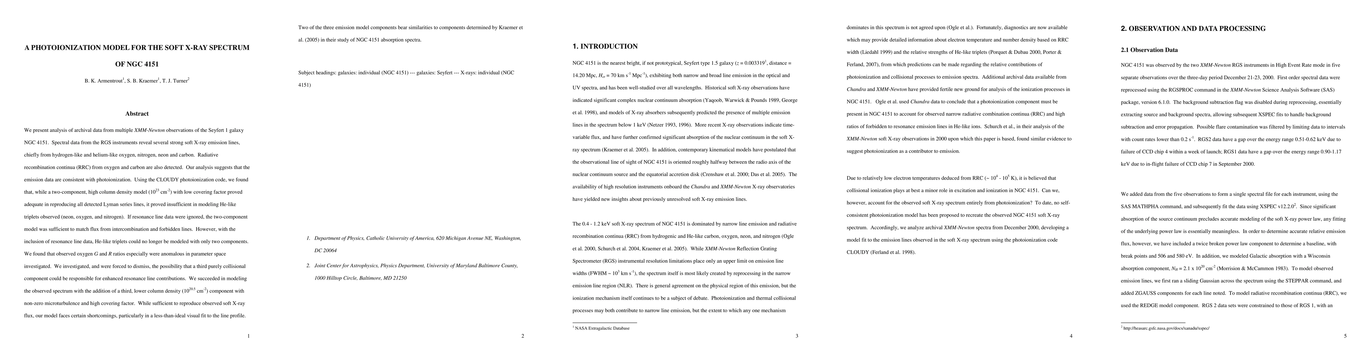 This paper analyzes XMM-Newton data of NGC 4151, revealing strong soft X-ray emission lines consistent with photoionization. A two-component model initially fits most data but fails to model He-like triplets; a third component with lower density and higher turbulence resolves this, though it has some visual fit issues.