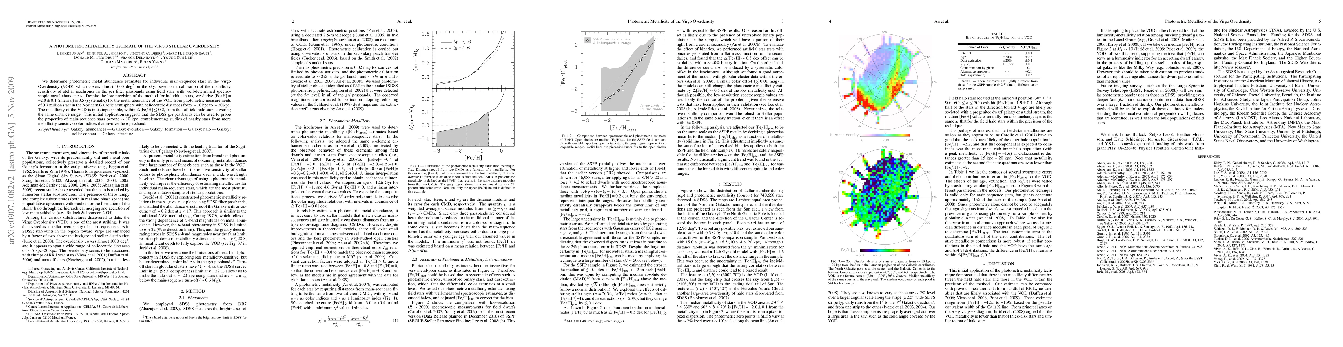 We determine photometric metal abundance estimates for individual main-sequence stars in the Virgo Overdensity (VOD), which covers almost 1000 deg^2 on the sky, based on a calibration of the metallicity sensitivity of stellar isochrones in the gri filter passbands using field stars with well-determined spectroscopic metal abundances. Despite the low precision of the method for individual stars, we derive [Fe/H] = -2.0 +/-0.1 (internal) +/-0.5 (systematic) for the metal abundance of the VOD from photometric measurements of 0.7 million stars in the Northern Galactic hemisphere with heliocentric distances from ~10 kpc to ~20 kpc. The metallicity of the VOD is indistinguishable, within Delta [Fe/H] < 0.2, from that of field halo stars covering the same distance range. This initial application suggests that the SDSS gri passbands can be used to probe the properties of main-sequence stars beyond ~10 kpc, complementing studies of nearby stars from more metallicity-sensitive color indices that involve the u passband.