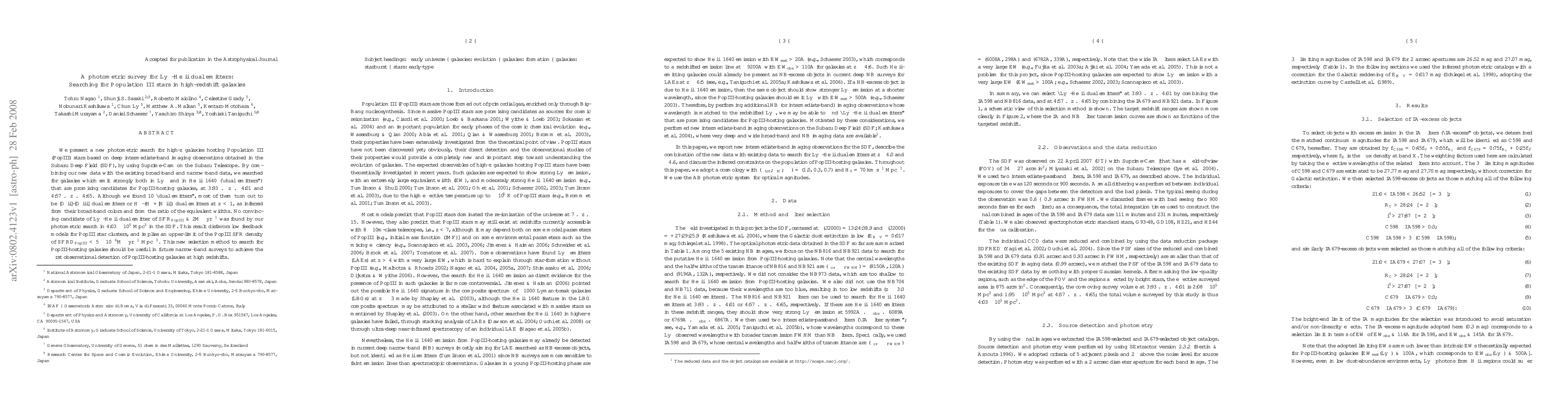 A photometric survey searched for Population III stars in high-redshift galaxies but found no convincing candidates with low star formation rates, setting an upper limit on the PopIII SFR density.