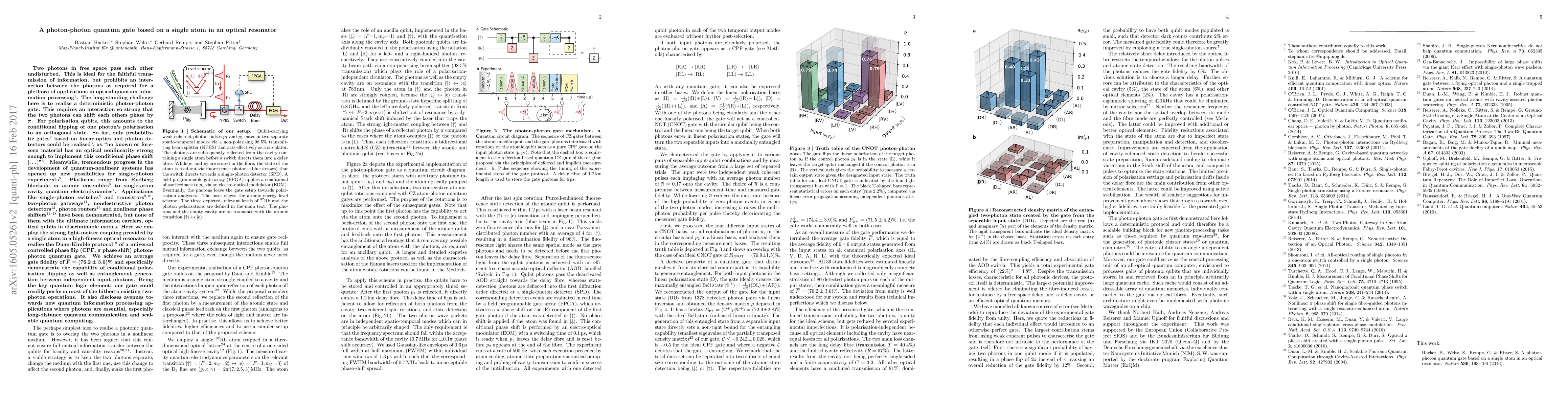 This paper presents a photon-photon quantum gate based on a single atom in an optical resonator, achieving a controlled phase flip with an average gate fidelity of 76.2%. The method demonstrates conditional polarisation flipping and entanglement generation between independent input photons, paving the way for new quantum information processing applications.