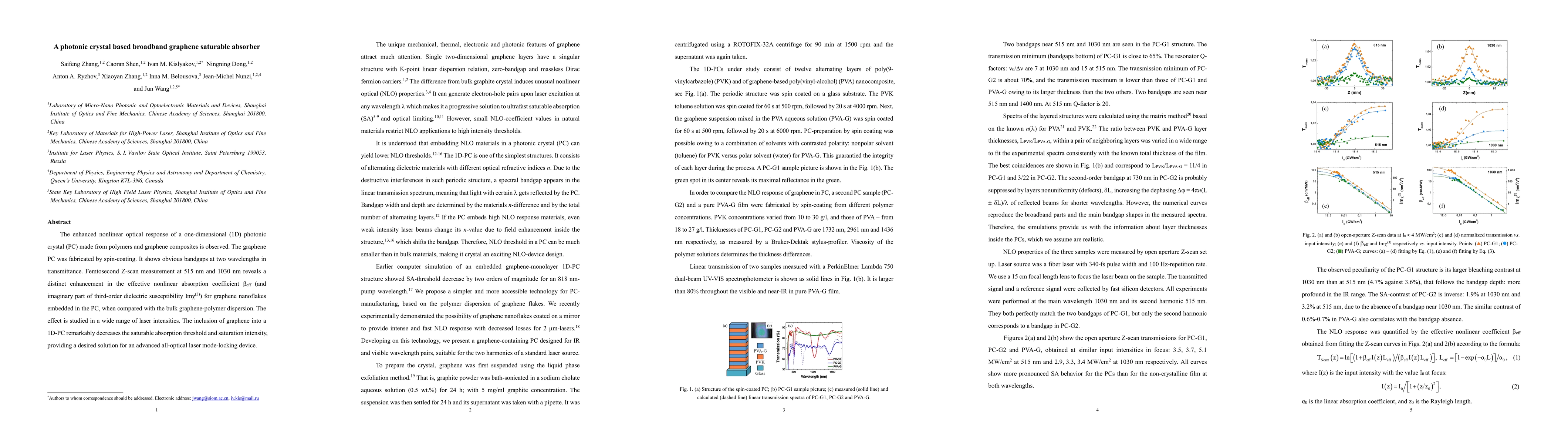 This paper investigates a photonic crystal-based broadband graphene saturable absorber, demonstrating enhanced nonlinear optical response and reduced saturable absorption threshold due to graphene nanoflakes embedded in a polymer photonic crystal. The study shows significant improvement in effective nonlinear absorption, making it suitable for advanced laser mode-locking applications.