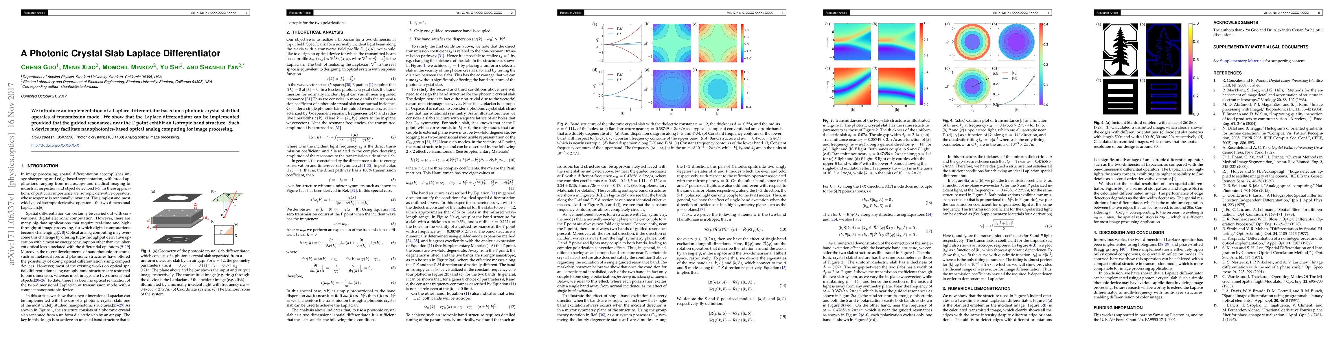 Summary: This paper presents a photonic crystal slab designed to function as a Laplace differentiator in transmission mode, leveraging guided resonances near the $\Gamma$ point for an isotropic band structure, potentially enabling advanced optical analog computing for image processing.