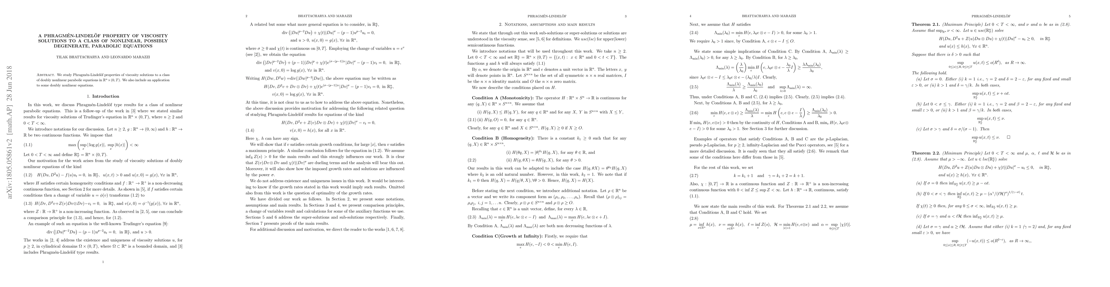 Summary: This paper investigates the Phragm\'en-Lindel\"of properties of viscosity solutions for a class of doubly nonlinear parabolic equations, and demonstrates an application to specific doubly nonlinear equations.