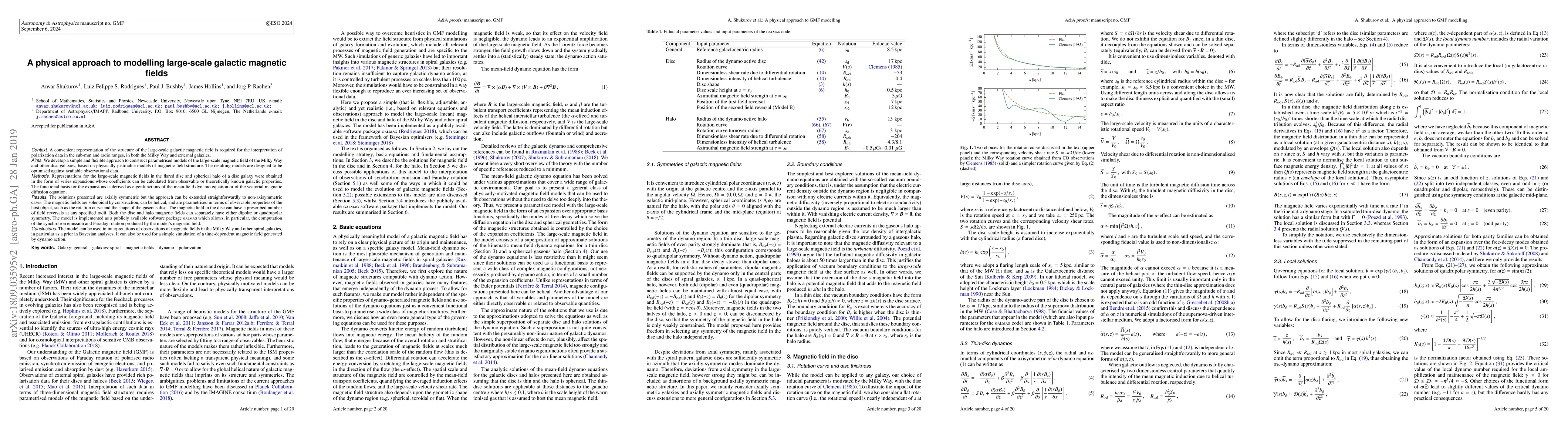This research presents a new method to model large-scale galactic magnetic fields using physically-justified models, expressed as series expansions. The approach, implemented in software package GalMag, allows for optimization against observational data, computation of synchrotron emission and Faraday rotation, and can be applied to both the Milky Way and external galaxies. It offers flexibility for axially and non-axially symmetric cases, and can model magnetic fields with prescribed reversals and dipolar or quadrupolar symmetry.