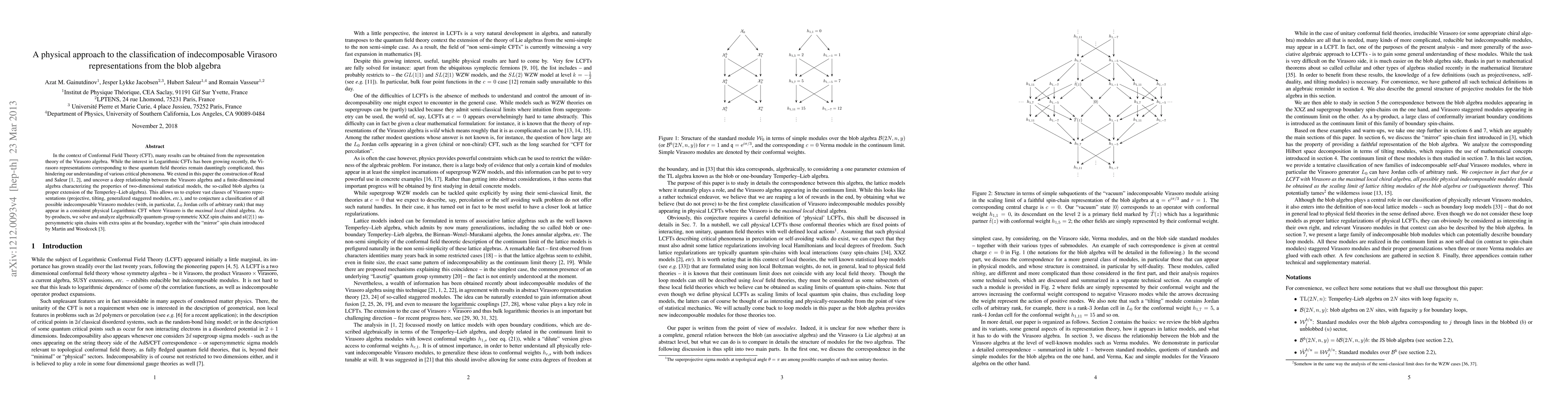This paper explores the classification of indecomposable Virasoro representations through a physical approach using the blob algebra, revealing a deep connection between Virasoro and the finite-dimensional blob algebra. It conjectures a classification of all possible indecomposable Virasoro modules in Logarithmic CFTs.