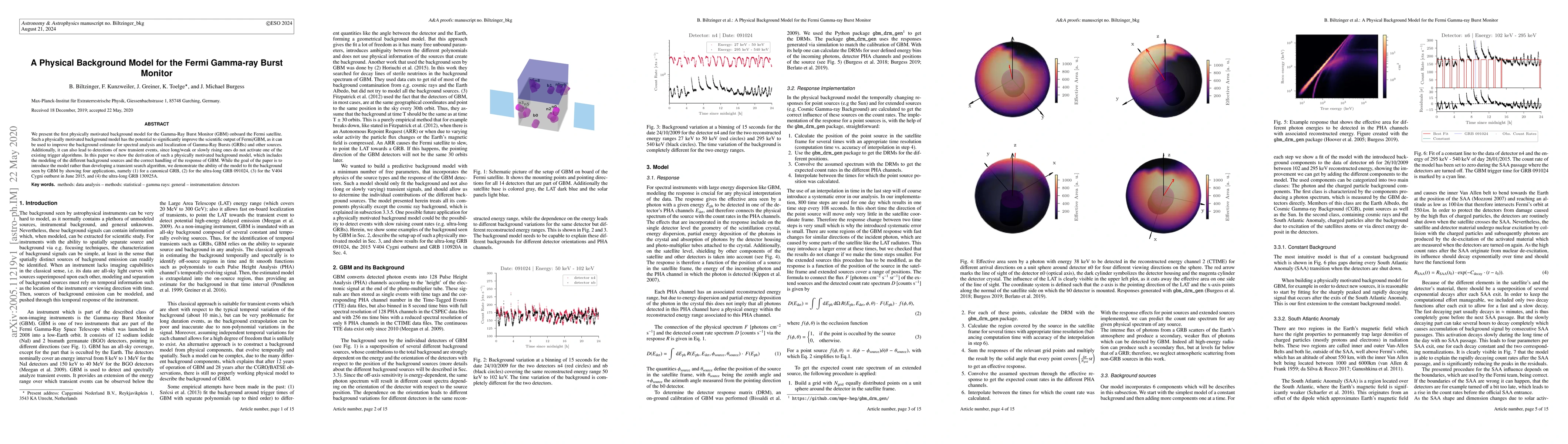 We present the first physically motivated background model for the Gamma-Ray Burst Monitor (GBM) onboard the Fermi satellite. Such a physically motivated background model has the potential to significantly improve the scientific output of Fermi/GBM, as it can be used to improve the background estimate for spectral analysis and localization of Gamma-Ray Bursts (GRBs) and other sources. Additionally, it can also lead to detections of new transient events, since long/weak or slowly rising ones do not activate one of the existing trigger algorithms. In this paper we show the derivation of such a physically motivated background model, which includes the modeling of the different background sources and the correct handling of the response of GBM. While the goal of the paper is to introduce the model rather than developing a transient search algorithm, we demonstrate the ability of the model to fit the background seen by GBM by showing four applications, namely (1) for a canonical GRB, (2) for the ultra-long GRB 091024, (3) for the V404 Cygni outburst in June 2015, and (4) the ultra-long GRB 130925A.