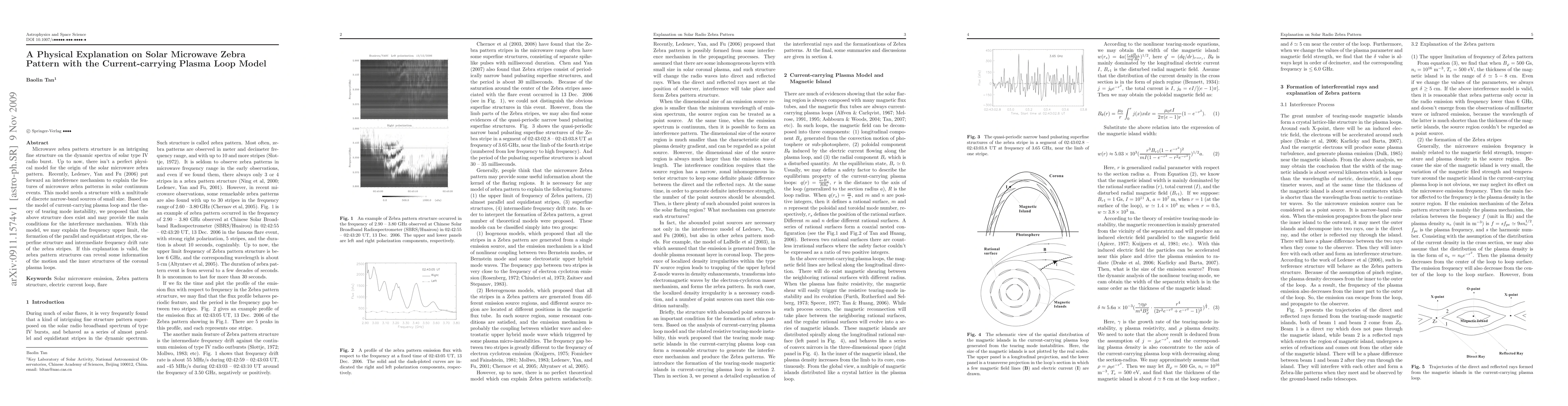 This paper proposes a current-carrying plasma loop model to explain the solar microwave zebra pattern, suggesting that tearing mode instability creates discrete narrow-band sources that facilitate interference, potentially revealing details about coronal plasma loops' motion and structure.