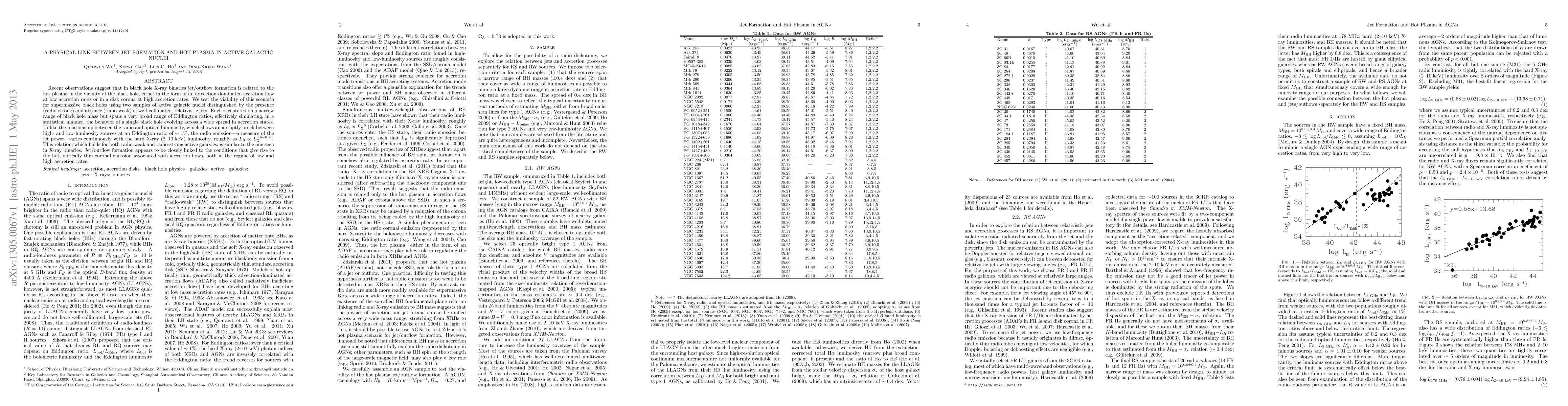 Recent observations suggest that in black hole X-ray binaries jet/outflow formation is related to the hot plasma in the vicinity of the black hole, either in the form of an advection-dominated accretion flow at low accretion rates or in a disk corona at high accretion rates. We test the viability of this scenario for supermassive black holes using two samples of active galactic nuclei distinguished by the presence (radio-strong) and absence (radio-weak) of well-collimated, relativistic jets. Each is centered on a narrow range of black hole mass but spans a very broad range of Eddington ratios, effectively simulating, in a statistical manner, the behavior of a single black hole evolving across a wide spread in accretion states. Unlike the relationship between the radio and optical luminosity, which shows an abruptly break between high- and low-luminosity sources at an Eddington ratio of ~1, the radio emission-a measure of the jet power-varies continuously with the hard X-ray (2-10 keV) luminosity, roughly as L_R \propto L_X^(0.6-0.75). This relation, which holds for both radio-weak and radio-strong active galaxies, is similar to the one seen in X-ray binaries. Jet/outflow formation appears to be closely linked to the conditions that give rise to the hot, optically thin coronal emission associated with accretion flows, both in the regime of low and high accretion rates.