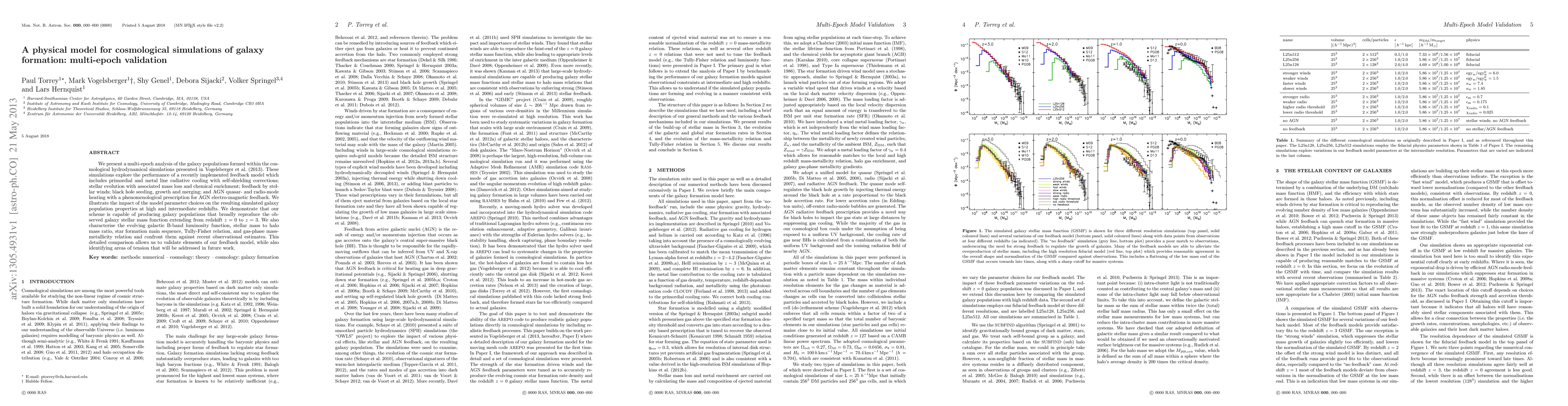 We present a multi-epoch analysis of the galaxy populations formed within the cosmological hydrodynamical simulations presented in Vogelsberger et al. (2013). These simulations explore the performance of a recently implemented feedback model which includes primordial and metal line radiative cooling with self-shielding corrections; stellar evolution with associated mass loss and chemical enrichment; feedback by stellar winds; black hole seeding, growth and merging; and AGN quasar- and radio-mode heating with a phenomenological prescription for AGN electro-magnetic feedback. We illustrate the impact of the model parameter choices on the resulting simulated galaxy population properties at high and intermediate redshifts. We demonstrate that our scheme is capable of producing galaxy populations that broadly reproduce the observed galaxy stellar mass function extending from redshift z=0 to z=3. We also characterise the evolving galactic B-band luminosity function, stellar mass to halo mass ratio, star formation main sequence, Tully-Fisher relation, and gas-phase mass-metallicity relation and confront them against recent observational estimates. This detailed comparison allows us to validate elements of our feedback model, while also identifying areas of tension that will be addressed in future work.