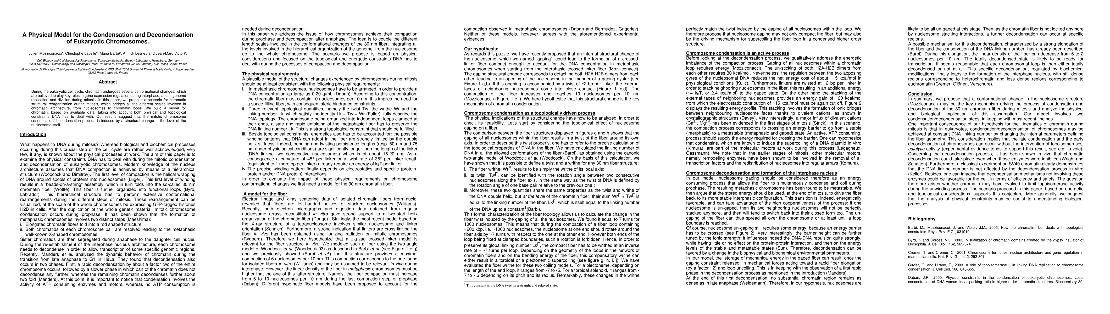 During the eukaryotic cell cycle, chromatin undergoes several conformational changes, which are believed to play key roles in gene expression regulation during interphase, and in genome replication and division during mitosis. In this paper, we propose a scenario for chromatin structural reorganization during mitosis, which bridges all the different scales involved in chromatin architecture, from nucleosomes to chromatin loops. We build a model for chromatin, based on available data, taking into account both physical and topological constraints DNA has to deal with. Our results suggest that the mitotic chromosome condensation/decondensation process is induced by a structural change at the level of the nucleosome itself.