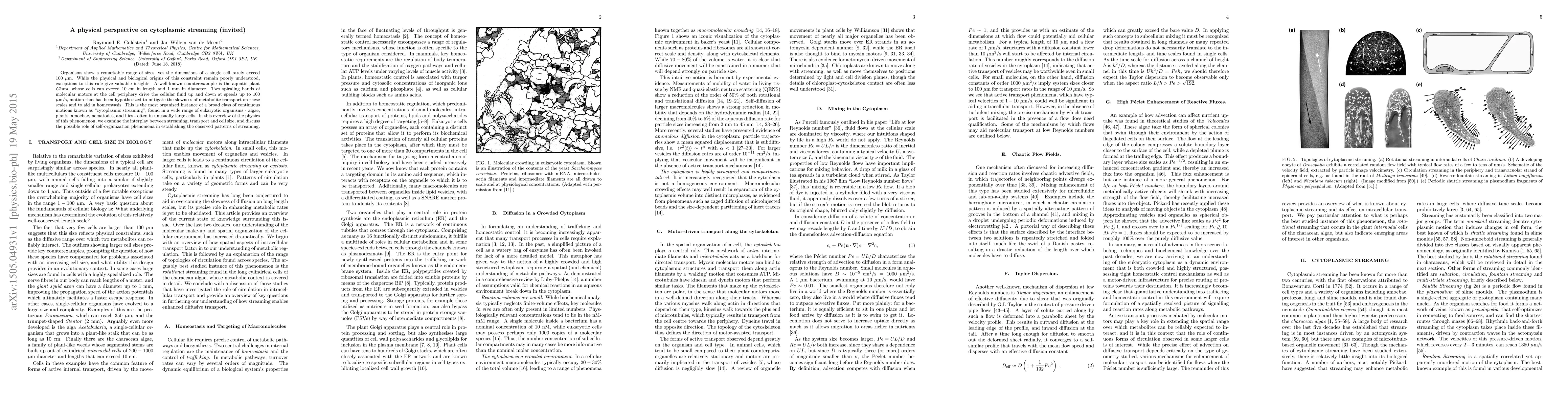 Organisms show a remarkable range of sizes, yet the dimensions of a single cell rarely exceed $100$ $\mu$m. While the physical and biological origins of this constraint remain poorly understood, exceptions to this rule give valuable insights. A well-known counterexample is the aquatic plant $Chara$, whose cells can exceed $10$ cm in length and $1$ mm in diameter. Two spiraling bands of molecular motors at the cell periphery drive the cellular fluid up and down at speeds up to $100$ $\mu$m/s, motion that has been hypothesized to mitigate the slowness of metabolite transport on these scales and to aid in homeostasis. This is the most organized instance of a broad class of continuous motions known as "cytoplasmic streaming", found in a wide range of eukaryotic organisms - algae, plants, amoebae, nematodes, and flies - often in unusually large cells. In this overview of the physics of this phenomenon, we examine the interplay between streaming, transport and cell size, and discuss the possible role of self-organization phenomena in establishing the observed patterns of streaming.