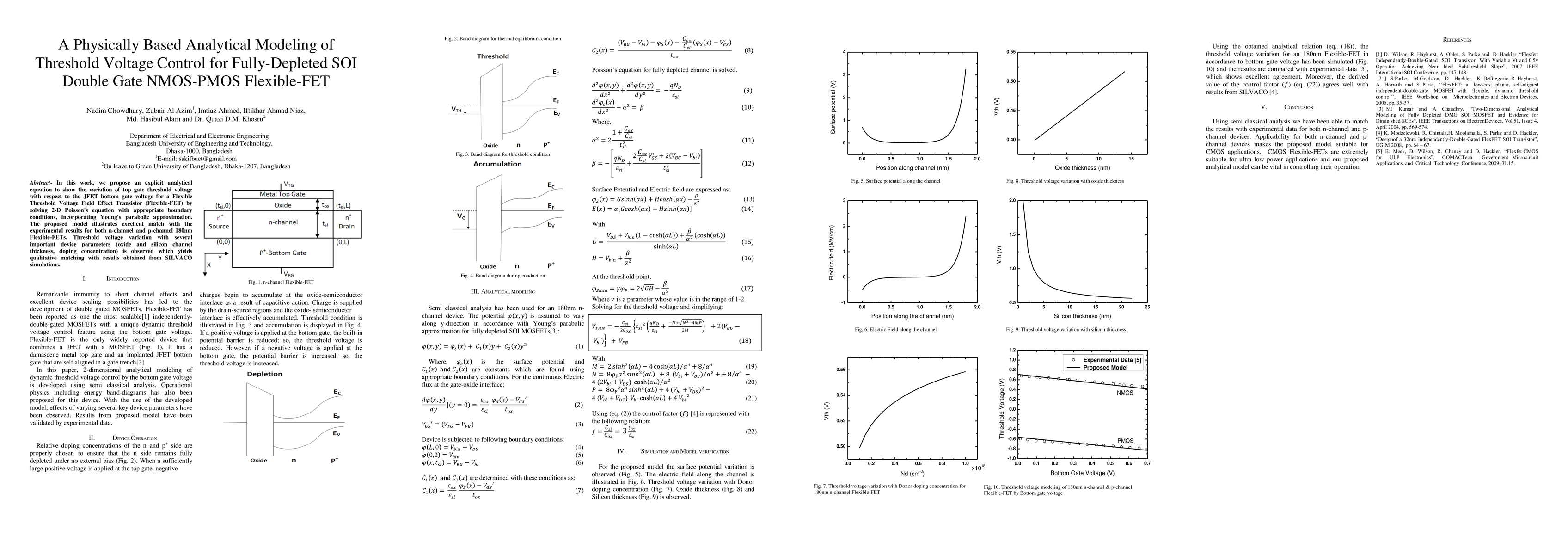 In this work, we propose an explicit analytical equation to show the variation of top gate threshold voltage with respect to the JFET bottom gate voltage for a Flexible Threshold Voltage Field Effect Transistor (Flexible-FET) by solving 2-D Poisson's equation with appropriate boundary conditions, incorporating Young's parabolic approximation. The proposed model illustrates excellent match with the experimental results for both n-channel and p-channel 180nm Flexible-FETs. Threshold voltage variation with several important device parameters (oxide and silicon channel thickness, doping concentration) is observed which yields qualitative matching with results obtained from SILVACO simulations.