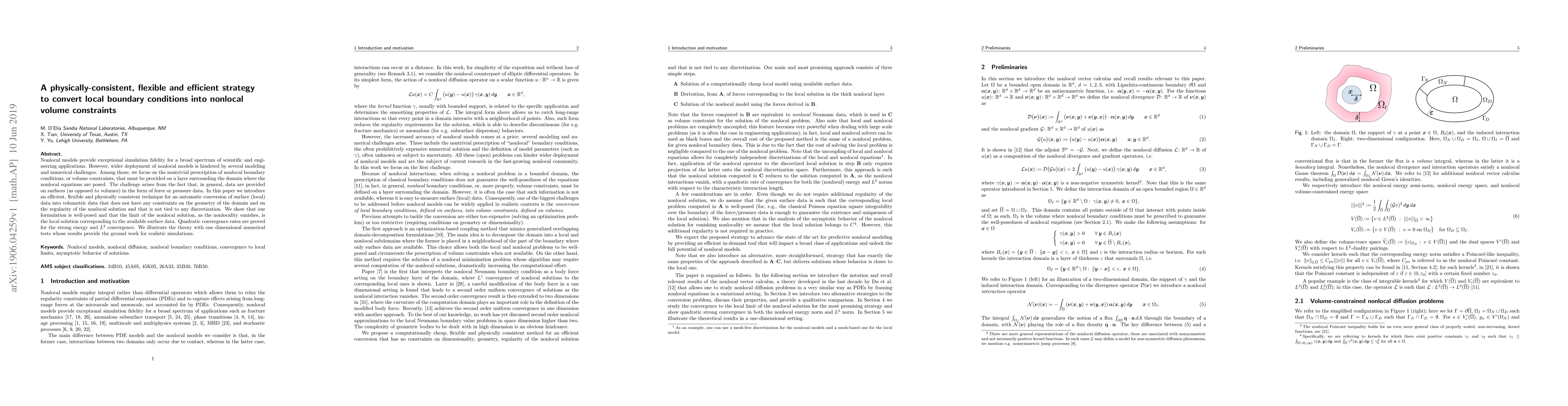 Nonlocal models provide exceptional simulation fidelity for a broad spectrum of scientific and engineering applications. However, wider deployment of nonlocal models is hindered by several modeling and numerical challenges. Among those, we focus on the nontrivial prescription of nonlocal boundary conditions, or volume constraints, that must be provided on a layer surrounding the domain where the nonlocal equations are posed. The challenge arises from the fact that, in general, data are provided on surfaces (as opposed to volumes) in the form of force or pressure data. In this paper we introduce an efficient, flexible and physically consistent technique for an automatic conversion of surface (local) data into volumetric data that does not have any constraints on the geometry of the domain and on the regularity of the nonlocal solution and that is not tied to any discretization. We show that our formulation is well-posed and that the limit of the nonlocal solution, as the nonlocality vanishes, is the local solution corresponding to the available surface data. Quadratic convergence rates are proved for the strong energy and L-2 convergence. We illustrate the theory with one dimensional numerical tests whose results provide the ground work for realistic simulations.