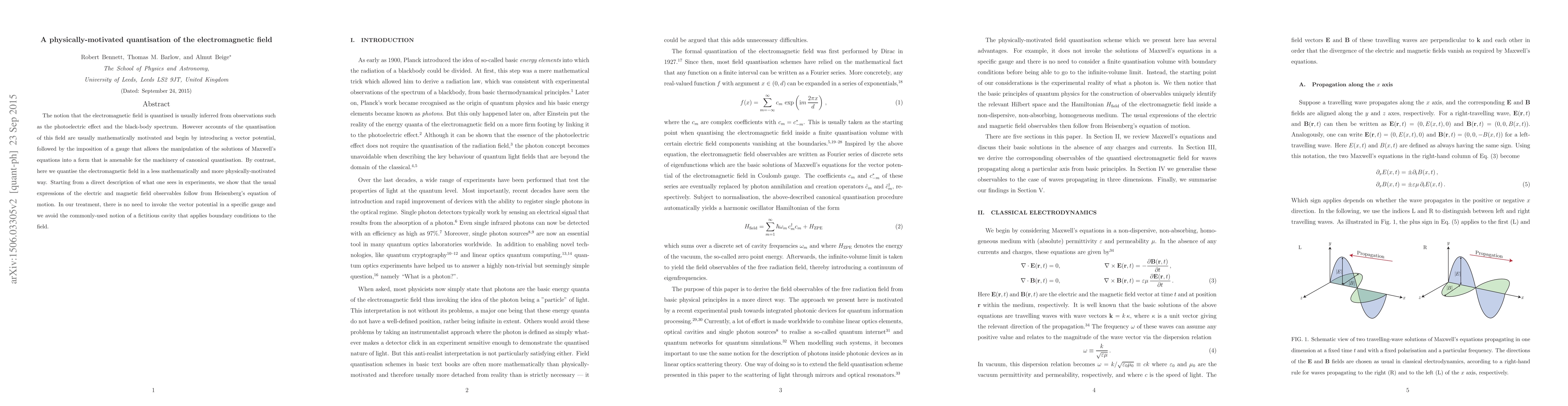 This paper proposes a physically-motivated approach to quantising the electromagnetic field, deriving electric and magnetic field observables directly from experimental observations and Heisenberg's equation of motion, without invoking the vector potential or a specific gauge.