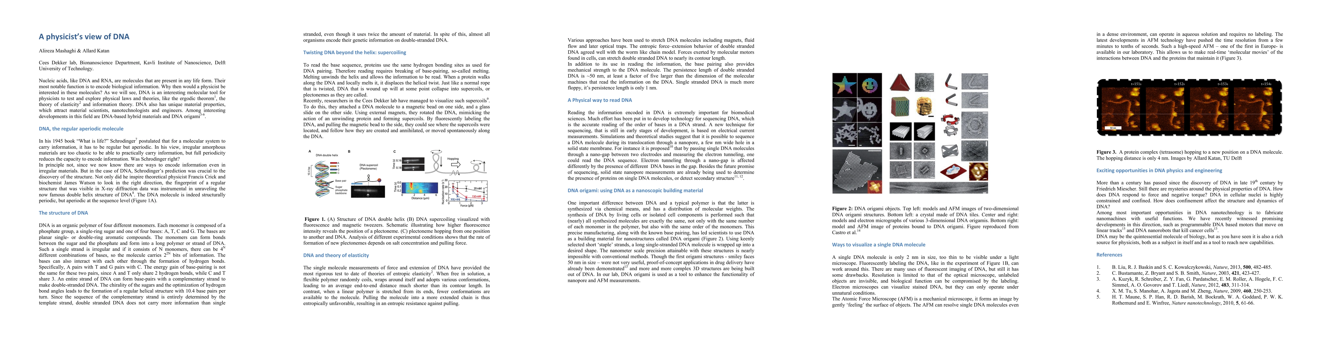 The paper presents DNA as a versatile material for testing physical theories and as a building block for nanoscale structures, such as DNA origami.