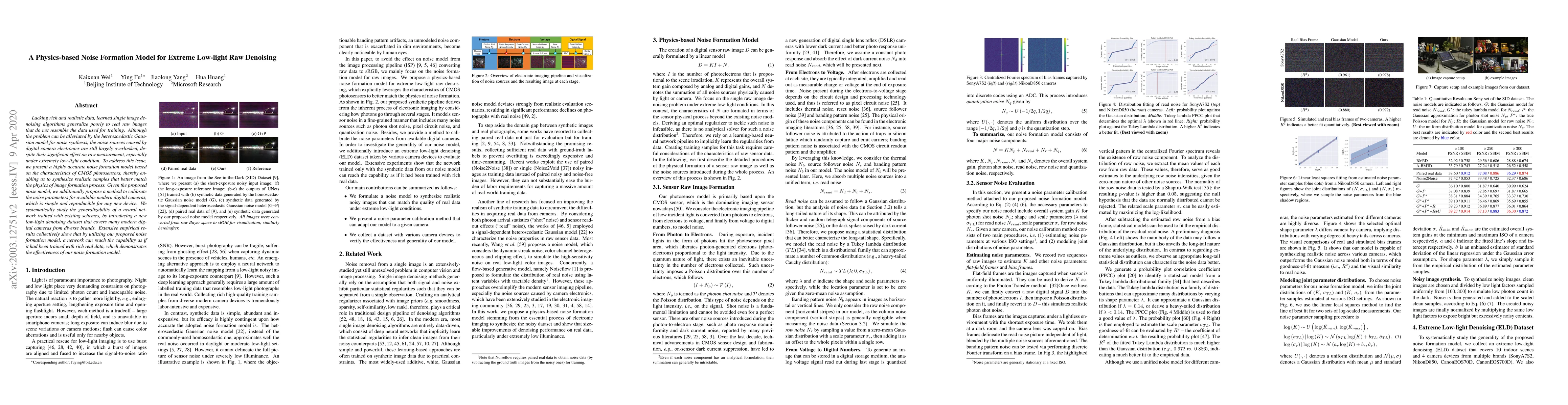 Researchers developed a physics-based noise formation model for low-light raw image denoising, improving generalizability to real-world data. The model enables accurate synthesis of realistic noise samples, enhancing the performance of neural networks in extreme low-light conditions.