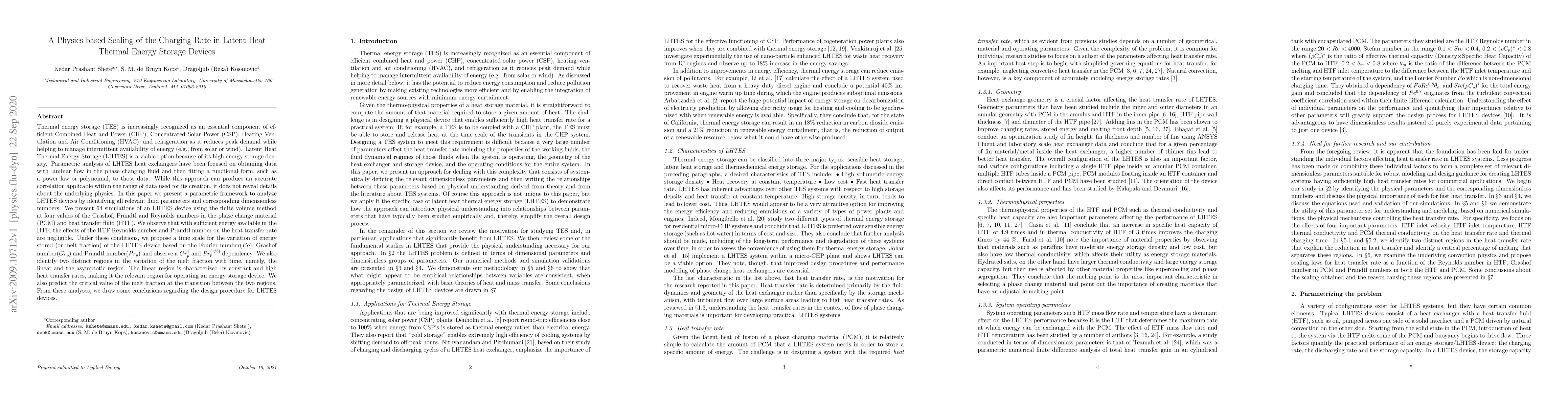 This paper develops a physics-based parametric framework to analyze Latent Heat Thermal Energy Storage (LHTES) devices, identifying key fluid parameters and dimensionless numbers. It proposes a time scale for energy storage variation based on the Fourier, Grashof, and Prandtl numbers, revealing two distinct regions in melt fraction variation and providing insights for LHTES device design.