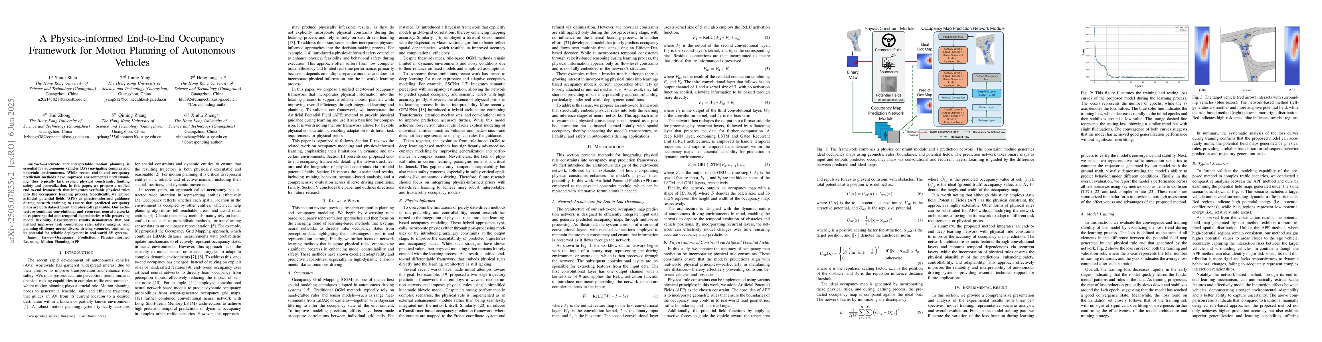 The research proposes a unified end-to-end framework that integrates artificial potential fields (APF) as physics-informed guidance into occupancy learning, using a combination of convolutional and recurrent neural networks to capture spatial and temporal dependencies.