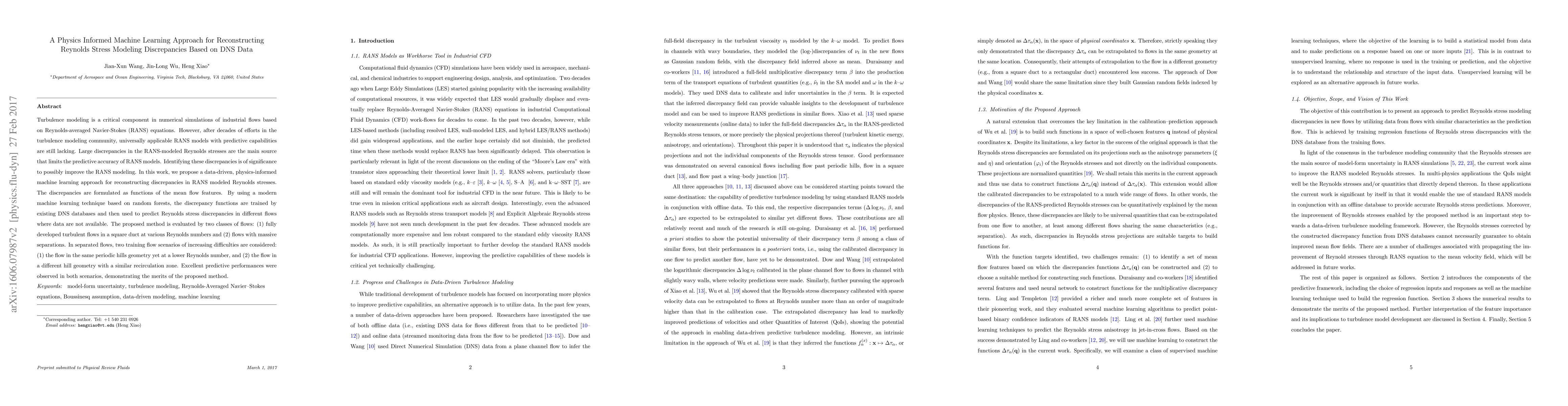 This paper proposes a physics-informed machine learning approach using random forests to predict discrepancies in Reynolds stresses modeled by RANS equations. The method demonstrates excellent predictive performance in flows over periodic hills, indicating potential for improving predictive turbulence modeling.