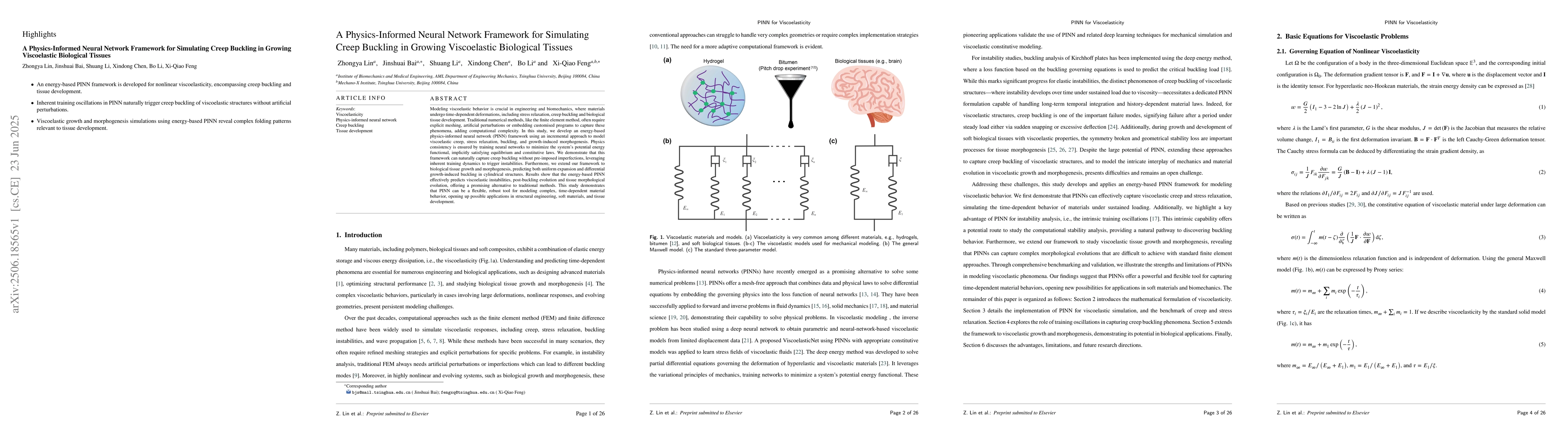 Modeling viscoelastic behavior is crucial in engineering and biomechanics, where materials undergo time-dependent deformations, including stress relaxation, creep buckling and biological tissue development. Traditional numerical methods, like the finite element method, often require explicit meshing, artificial perturbations or embedding customised programs to capture these phenomena, adding computational complexity. In this study, we develop an energy-based physics-informed neural network (PINN) framework using an incremental approach to model viscoelastic creep, stress relaxation, buckling, and growth-induced morphogenesis. Physics consistency is ensured by training neural networks to minimize the systems potential energy functional, implicitly satisfying equilibrium and constitutive laws. We demonstrate that this framework can naturally capture creep buckling without pre-imposed imperfections, leveraging inherent training dynamics to trigger instabilities. Furthermore, we extend our framework to biological tissue growth and morphogenesis, predicting both uniform expansion and differential growth-induced buckling in cylindrical structures. Results show that the energy-based PINN effectively predicts viscoelastic instabilities, post-buckling evolution and tissue morphological evolution, offering a promising alternative to traditional methods. This study demonstrates that PINN can be a flexible robust tool for modeling complex, time-dependent material behavior, opening possible applications in structural engineering, soft materials, and tissue development.
