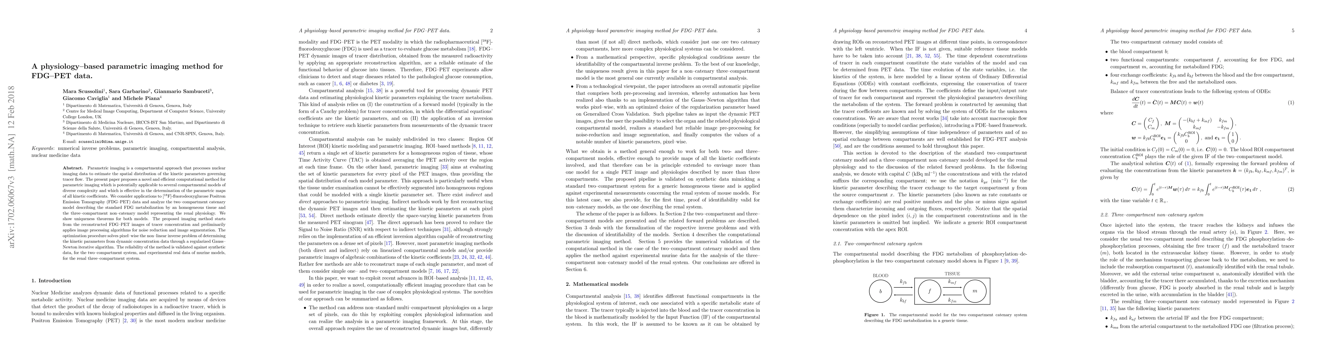 This paper introduces a novel computational method for parametric imaging in FDG-PET data, utilizing a regularized Gauss-Newton algorithm to determine kinetic parameters from dynamic concentration data. The method is validated for both two-compartment and three-compartment models, demonstrating its applicability to diverse physiological processes.