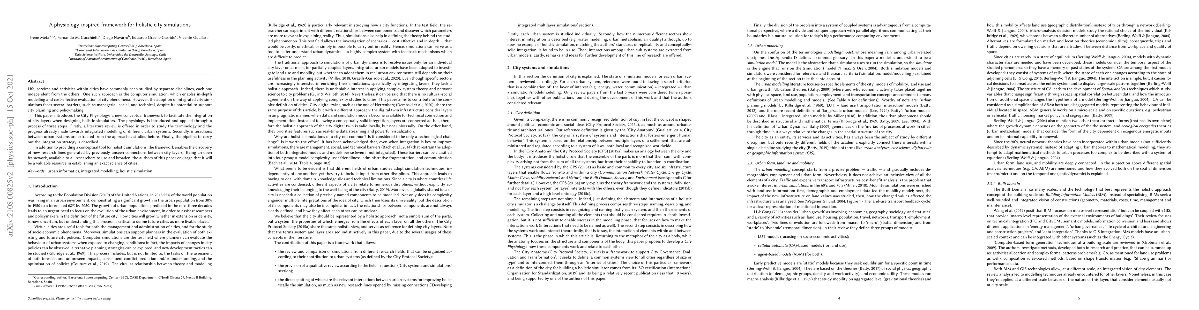 This paper introduces City Physiology, a framework for integrating various urban systems into holistic city simulations, aiming to overcome barriers to integrated city modelling and support urban planning and policymaking. The framework is developed through a literature review, extraction of urban system interactions, and a detailed integration strategy.