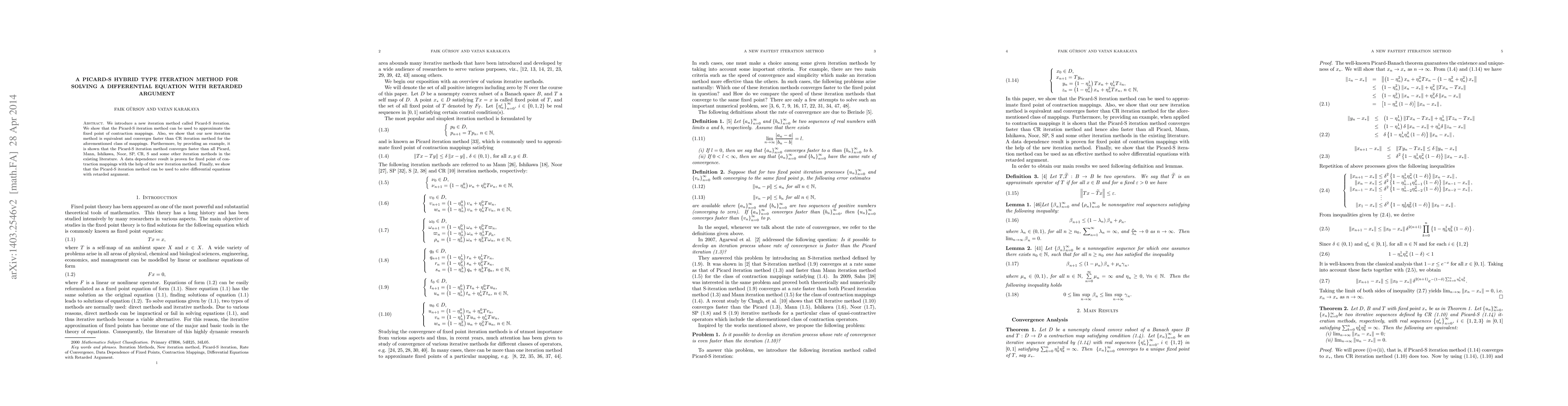 This paper introduces a new Picard-S iteration method for approximating fixed points of contraction mappings, demonstrating its faster convergence compared to existing methods and its application to solving differential equations with retarded arguments. The method also proves a data dependence result for fixed points.