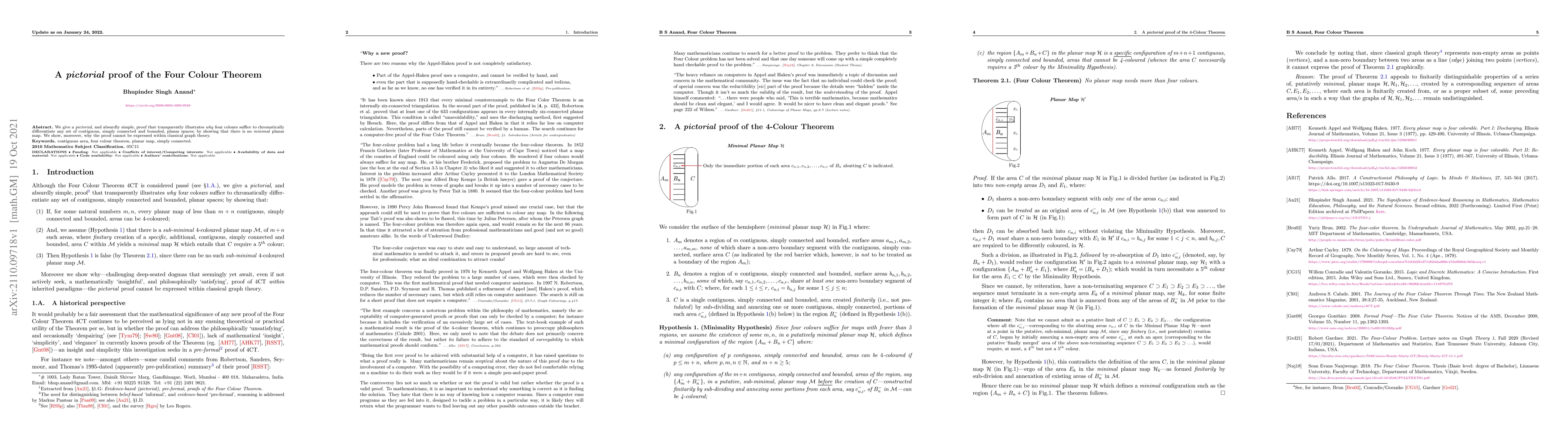 We give a pictorial proof that transparently illustrates why four colours suffce to chromatically differentiate any set of contiguous, simply connected and bounded, planar spaces; by showing that there is no minimal planar map. We show, moreover, why the proof cannot be expressed within classical graph theory.