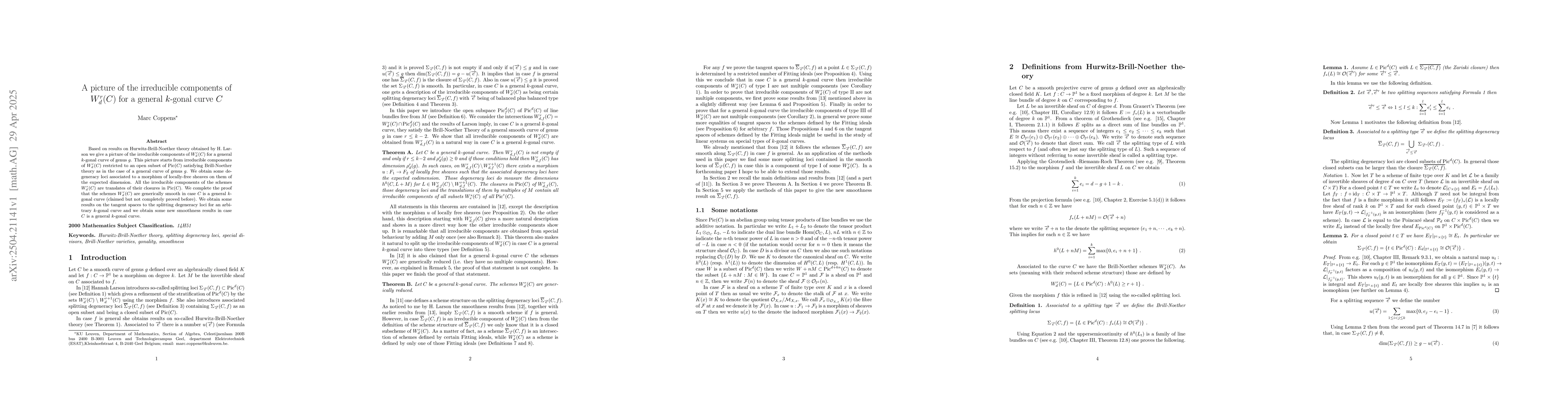 The paper presents a comprehensive analysis of the irreducible components of $W^r_d(C)$ for general $k$-gonal curves, completing previous partial proofs and providing new results on tangent spaces and smoothness.