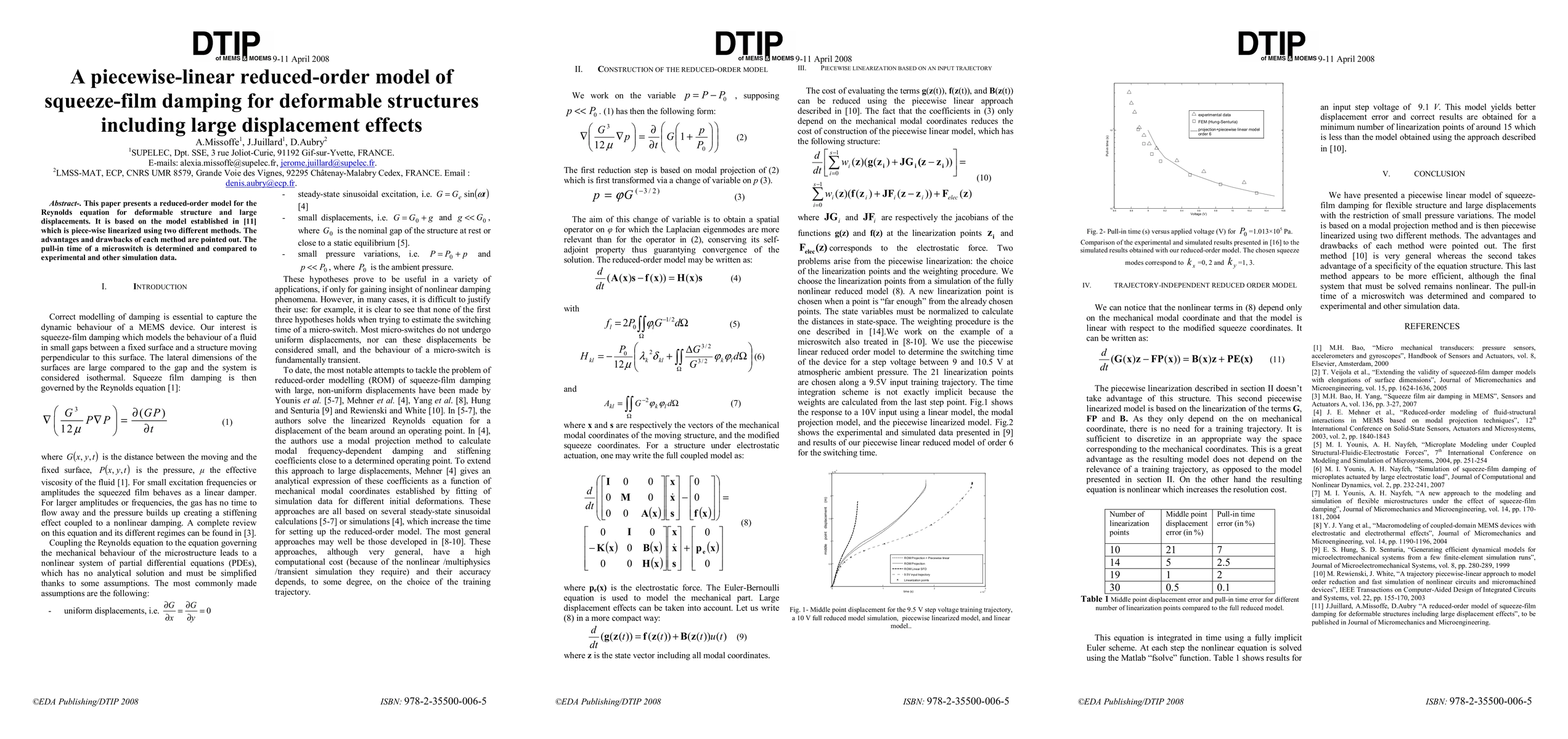 This paper presents a reduced-order model for the Reynolds equation for deformable structure and large displacements. It is based on the model established in [11] which is piece-wise linearized using two different methods. The advantages and drawbacks of each method are pointed out. The pull-in time of a microswitch is determined and compared to experimental and other simulation data.