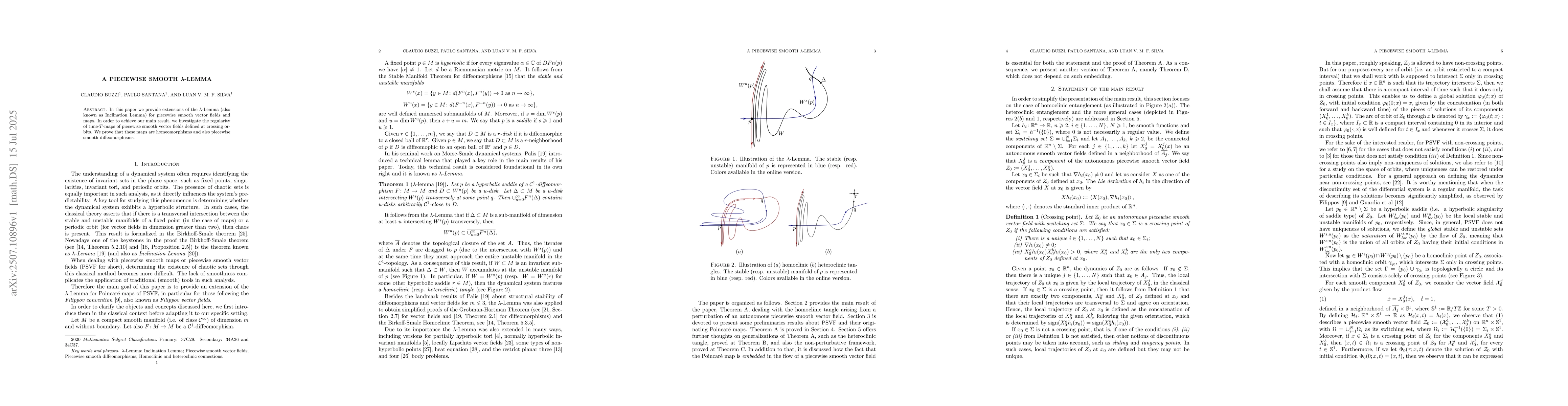 In this paper we provide extensions of the $\lambda$-Lemma (also known as Inclination Lemma) for piecewise smooth vector fields and maps. In order to achieve our main result, we investigate the regularity of time-T-maps of piecewise smooth vector fields defined at crossing orbits. We prove that these maps are homeomorphisms and also piecewise smooth diffeomorphisms.