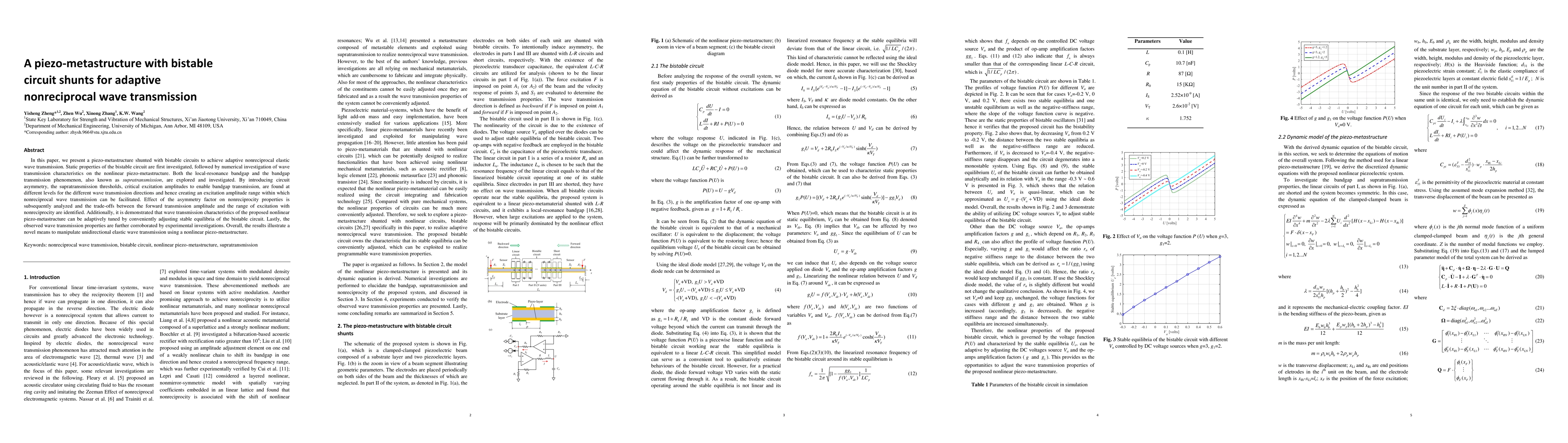 This paper introduces a piezo-metastructure with bistable circuit shunts to enable adaptive nonreciprocal elastic wave transmission. The study explores supratransmission and nonreciprocity through circuit asymmetry, demonstrating tunable wave transmission properties via adjustments to the bistable circuit's stable equilibria.