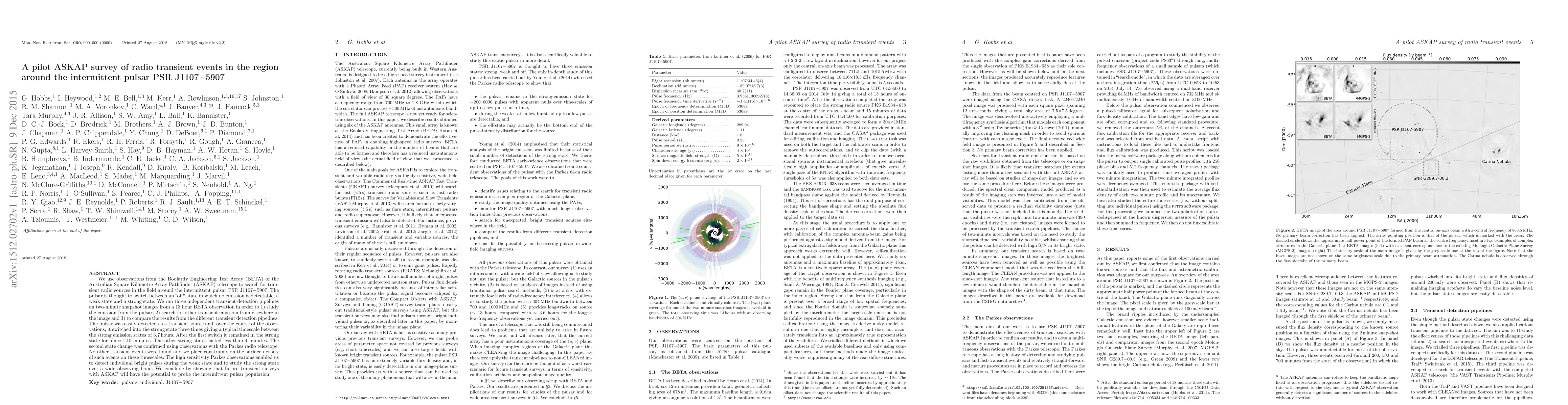 Researchers used ASKAP telescope to study the intermittent pulsar PSR J1107-5907, detecting it as a transient source that switched between states every 3.7 hours, with high sensitivity allowing for individual bright pulses during its weak state.