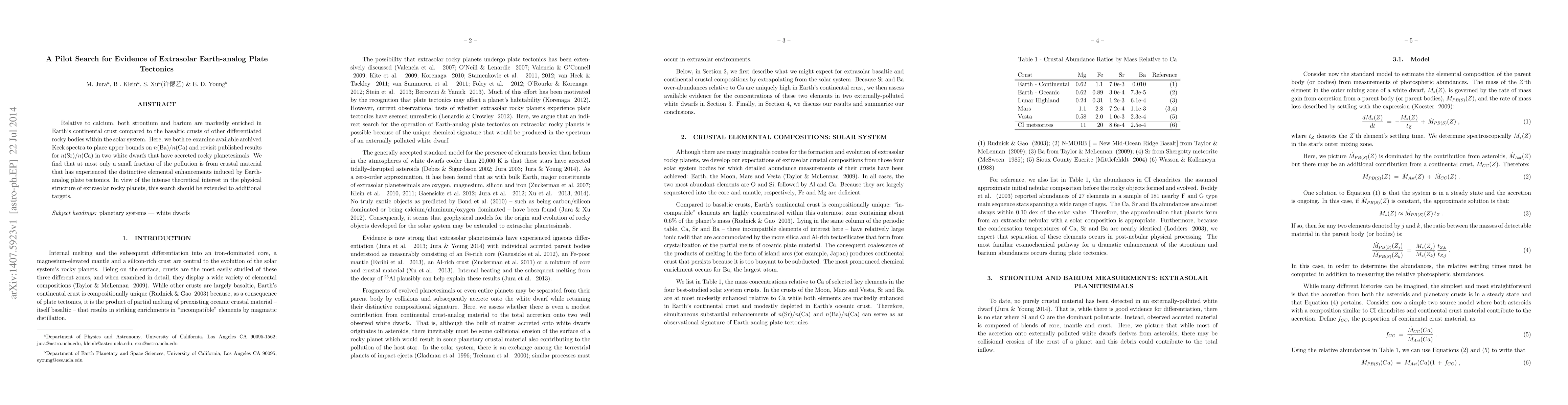 This study re-examines archived Keck spectra to determine the presence of Earth-analog plate tectonics in extrasolar planets by analyzing the ratios of strontium and barium to calcium in white dwarfs. The findings suggest limited evidence for such tectonics, indicating the need for further research on additional targets.