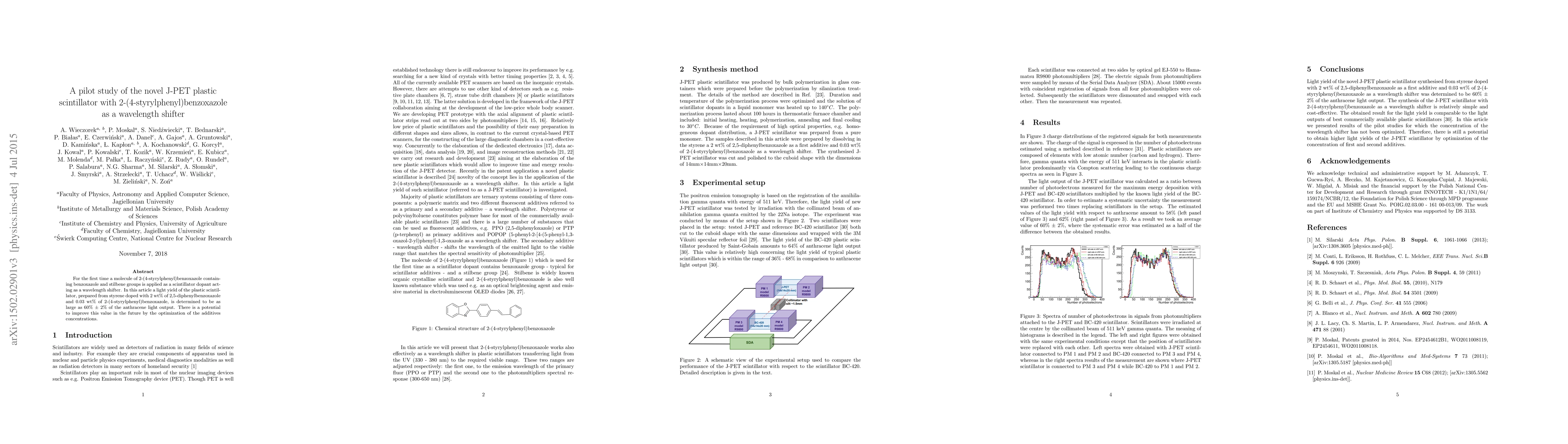 A new scintillator was found to have a light yield of 60% compared to anthracene, with potential for improvement through optimization of additives concentrations.