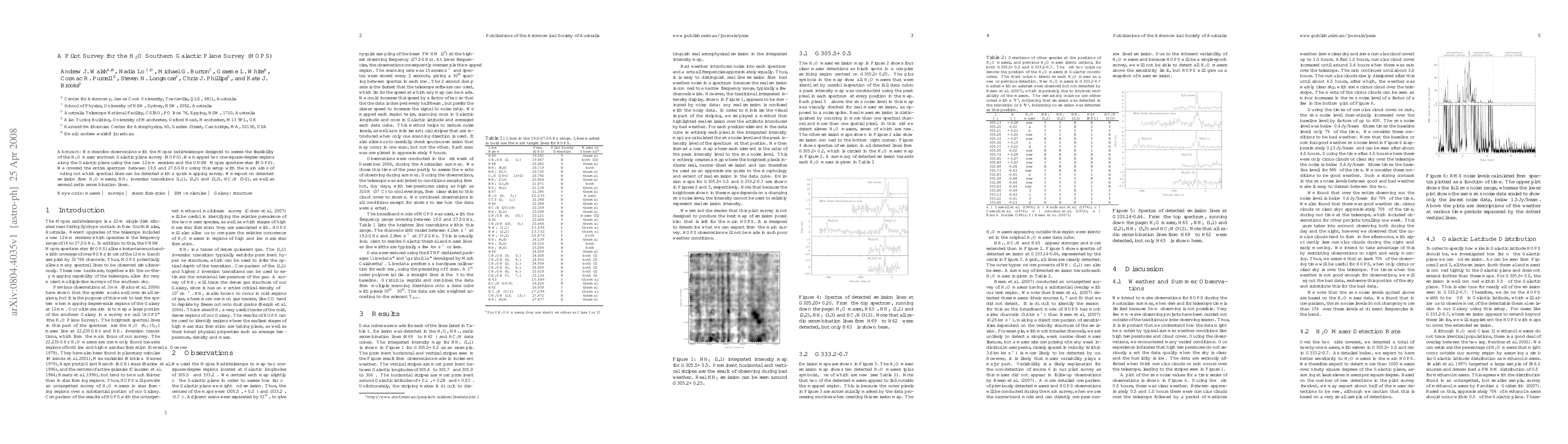 This pilot survey with the Mopra radiotelescope aims to evaluate the feasibility of the H$_2$O maser southern Galactic plane survey (HOPS). Initial mapping of two regions revealed detectable emission from H$_2$O masers, NH$_3$ inversion transitions, HC$_3$N, and several radio recombination lines.