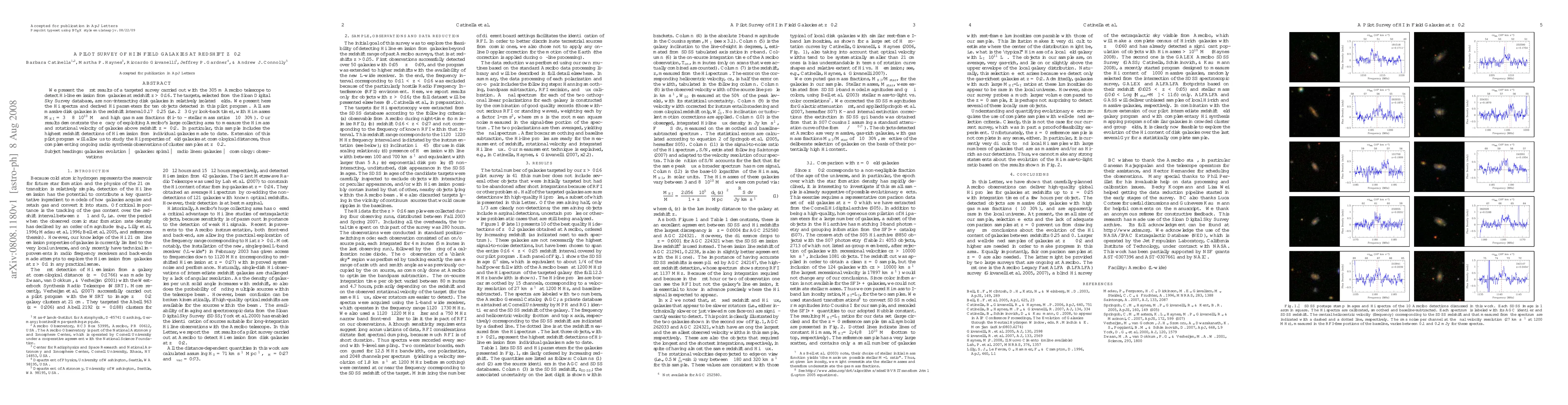 This pilot survey complements ongoing radio synthesis observations of cluster samples at z~0.2, allowing for the study of HI properties of field galaxies at cosmological distances.