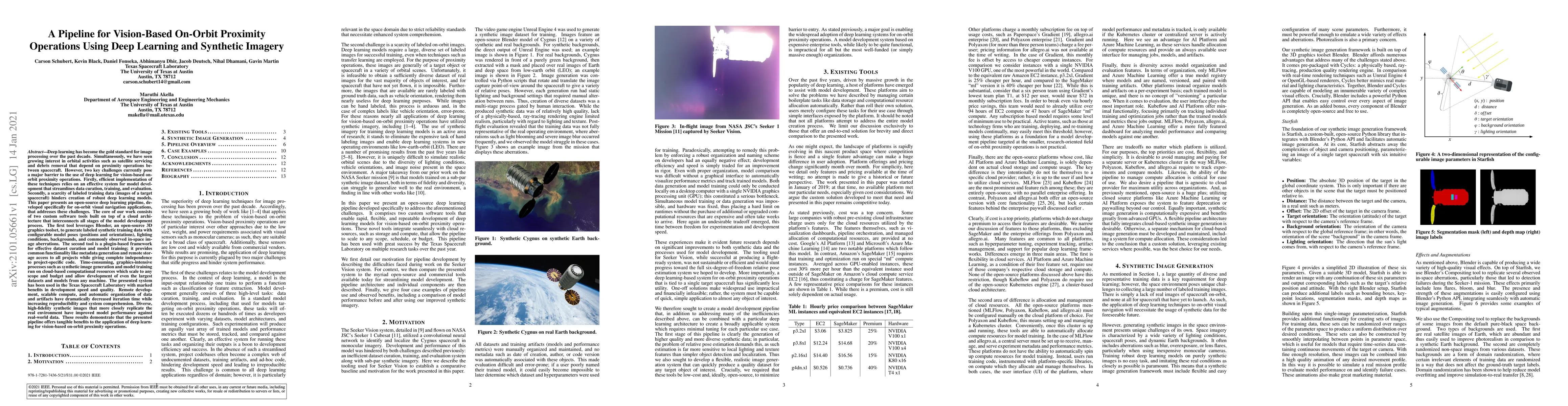 This paper introduces an open-source deep learning pipeline for vision-based on-orbit proximity operations, addressing challenges of data scarcity and model development efficiency. It utilizes synthetic imagery generated via Blender and a cloud-based framework for streamlined model training and evaluation.