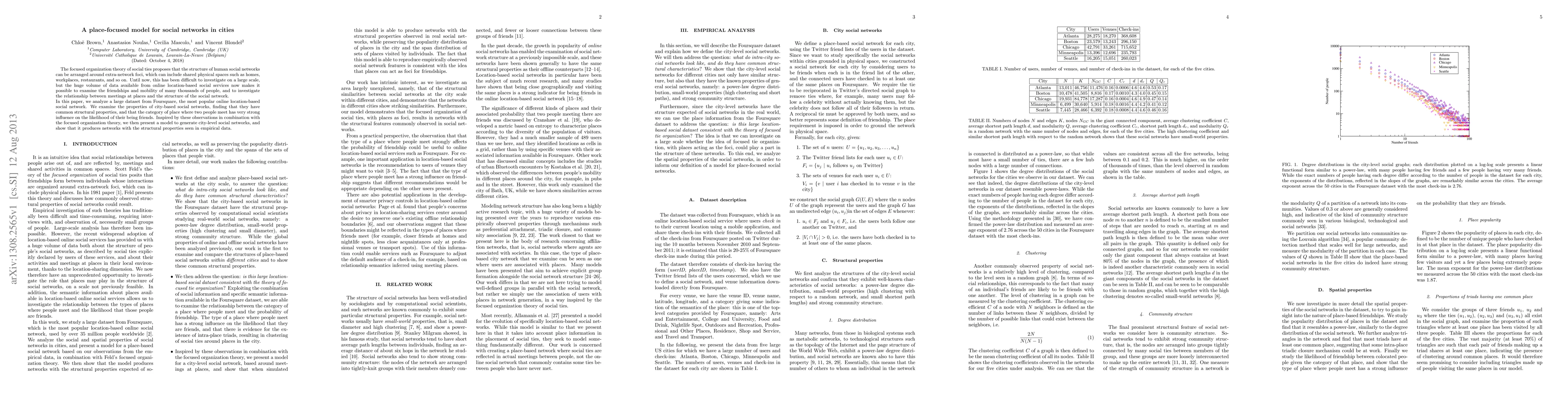 This paper investigates how shared physical spaces influence the structure of city-based social networks using data from Foursquare. It finds that meeting places strongly affect friendship likelihood and proposes a model that generates city-level social networks with structural properties matching empirical data.