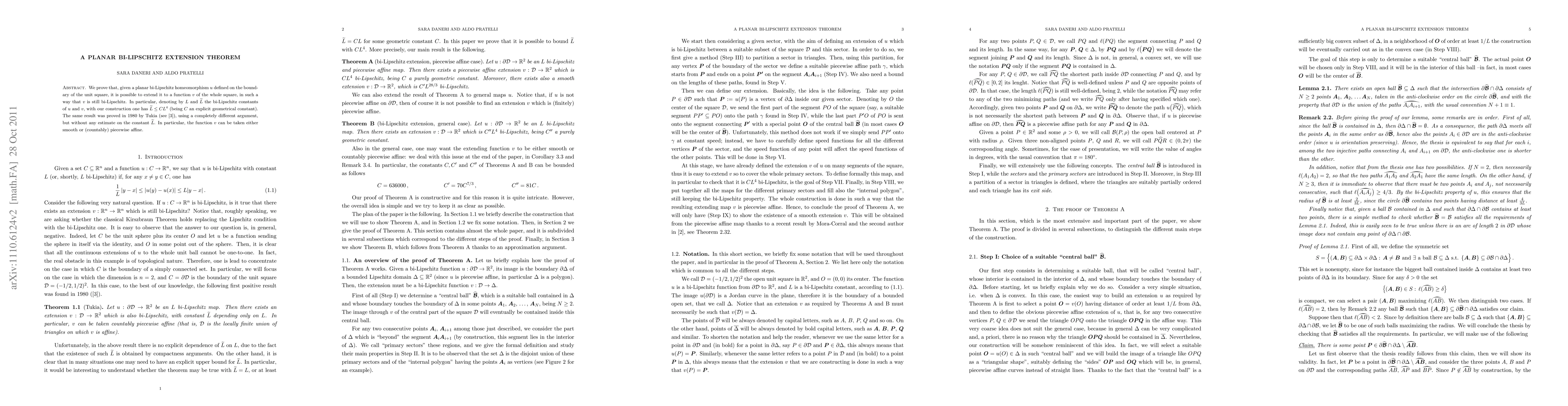 This paper proves a planar bi-Lipschitz extension theorem, showing that a bi-Lipschitz homeomorphism on the boundary of a unit square can be extended to a bi-Lipschitz function over the entire square with a bound on the extension's bi-Lipschitz constant. The result improves upon a previous proof by Tukia with a tighter constant estimate.