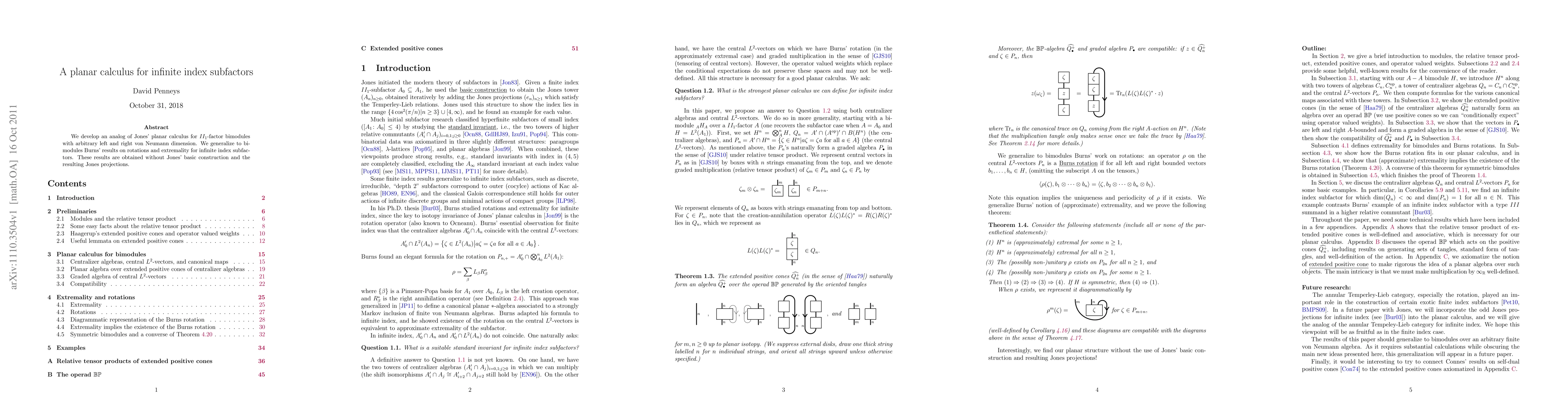 Researchers developed a planar calculus for infinite index subfactors in II_1-factor bimodules, extending previous results on rotations and extremality without using Jones' basic construction and projections.