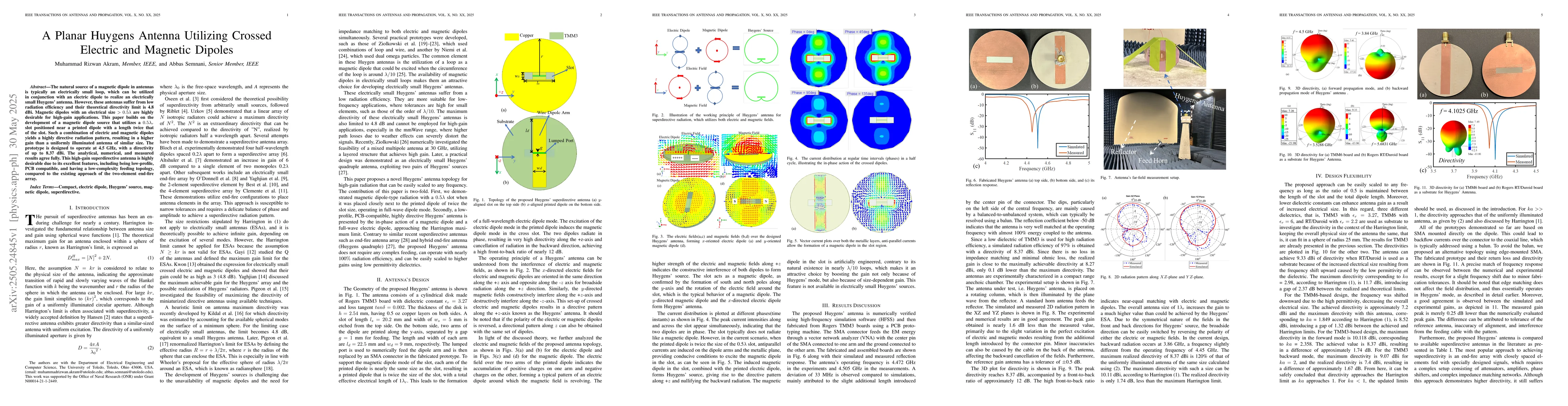 Researchers developed a high-gain antenna design that combines electric and magnetic dipoles, achieving a directivity of up to 8.37 dBi, outperforming existing antennas in terms of size, complexity, and gain.