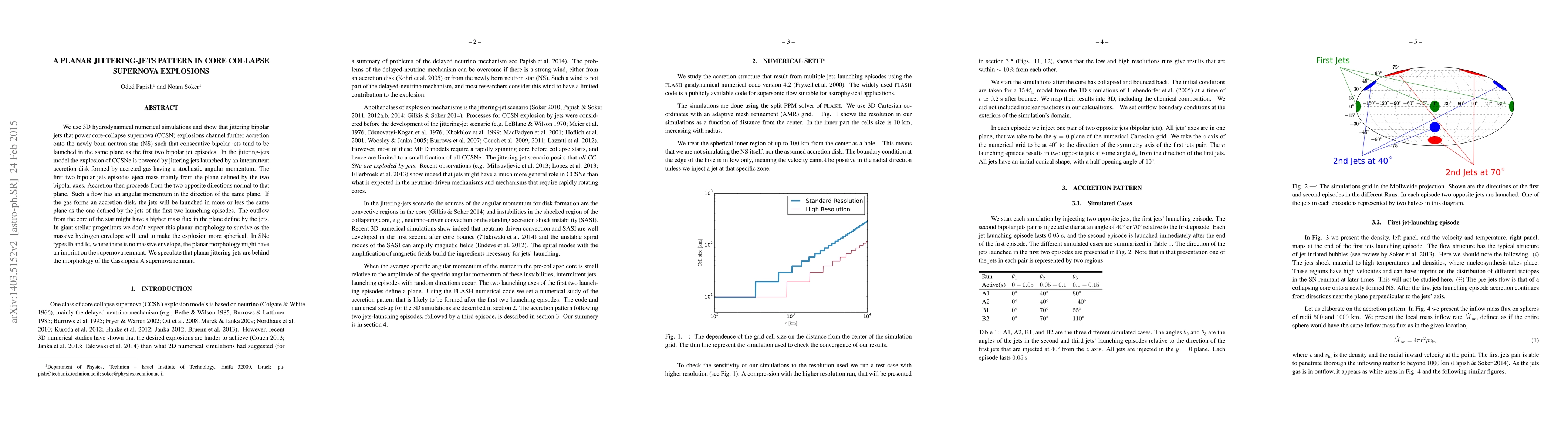 This paper presents 3D simulations showing that jittering bipolar jets in core-collapse supernova explosions channel accretion onto the neutron star, leading to consecutive jets launched in the same plane. The planar morphology may influence the remnant, especially in SNe Ib and Ic, potentially explaining the Cassiopeia A supernova remnant's shape.